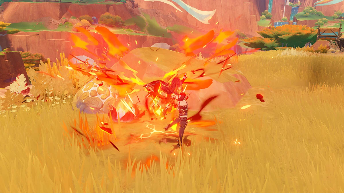В первую очередь Натлан похвастался новой механикой, основанной на некоем загадочном веществе — флогистоне. Если зайти на территорию Пиро царства, можно увидеть появившуюся над HP шкалу, которая пополняется в местах большого скопления флогистона и тратится исключительно жителями Натлана, которые входят в особую стойку.