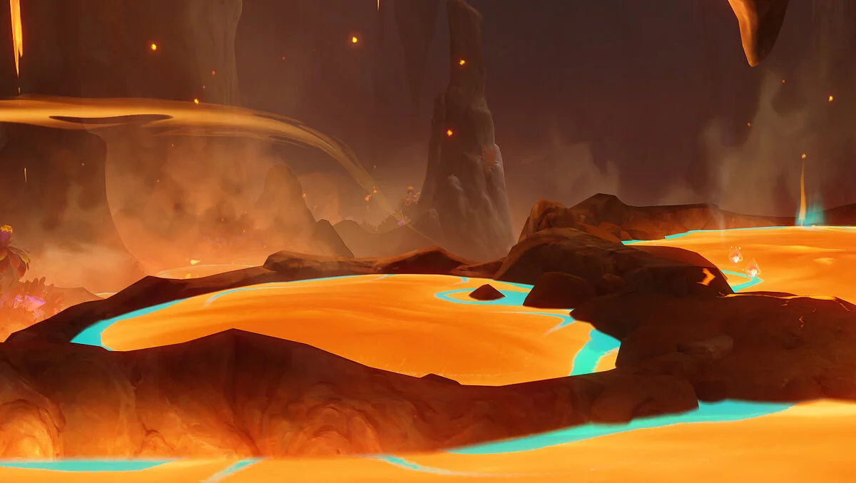 Флогистон бывает разных видов: жидким и в виде частиц. В первом случае вещество напоминает лаву, а если попасть туда, то у активного персонажа будет непрерывно снижаться HP. Похожая механика есть и у воды с высоким содержанием Электро в Инадзуме и на Драконьем Хребте, но с лютым морозом. Однако по жидкому флогистону могут передвигаться колохозавры — морские заврианы, в которых способен вселяться Путешественник. Этой же способностью обладает Муалани и другие, ещё не вышедшие члены племени «Народ Родников». Входя в особую стойку, Гидро каталистка плавает по лаве не получая урон.