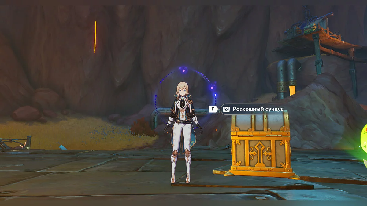 После этого одолейте Пиро агента Фатуи с помощью заврианов, они попадут на свободу, а вы получите роскошный сундук.