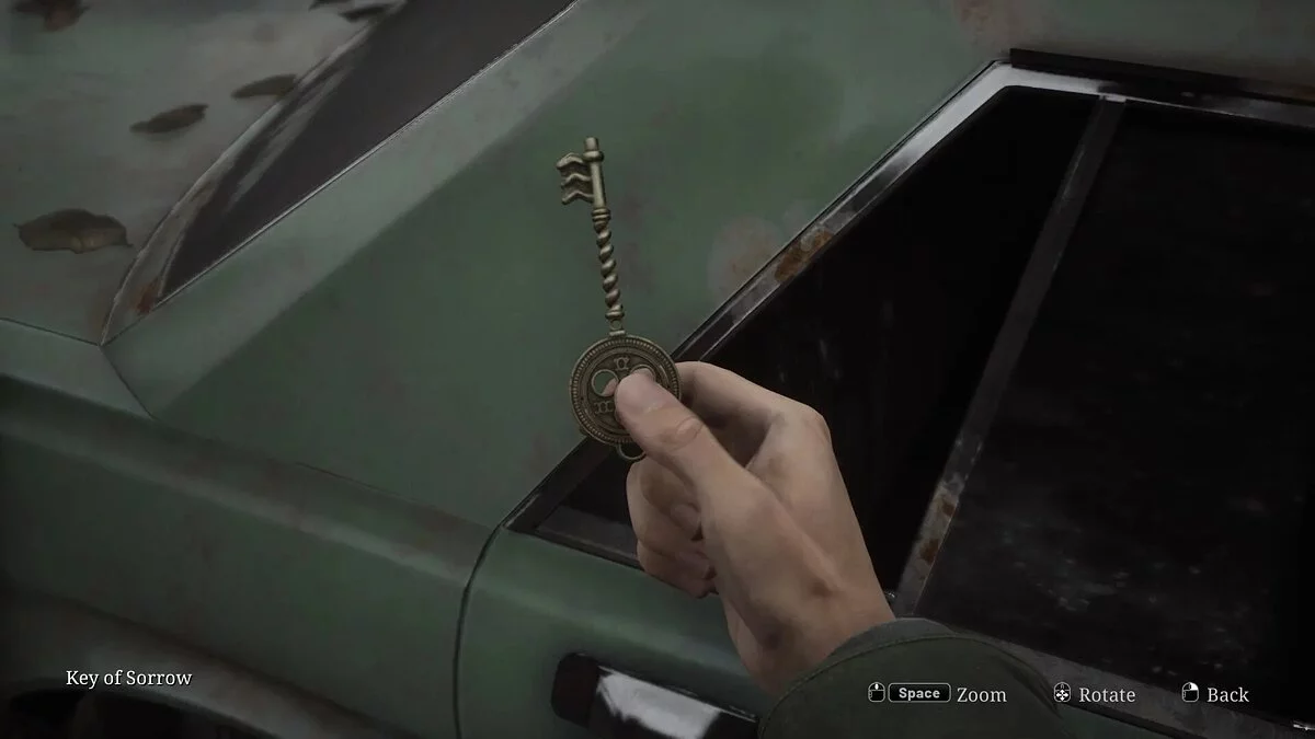 Снова доступна в режиме «Новая игра+». В самом начале игры доберитесь до места, где Джеймс получал доску и радио. Теперь же есть возможность обнаружить бензопилу (в районе ранчо). Отыщите зеленый автомобиль рядом с «Лучшими автозапчастями». Разбейте бензопилой все окна и найдете ключ скорби. Он потребуется позднее.