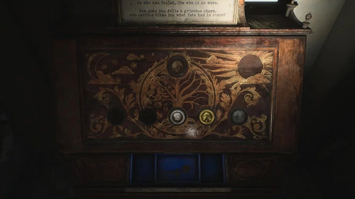 Шкаф с монетами находится внутри офисной зоны первого этажа, напротив главного входа. Во время обследования жилого комплекса «Вудсайд» вы будете находить эмблемы, которые нужно вставлять в головоломку. После этого вам нужно перемещать монеты по отверстиям, исходя из условий загадки, которая появится сверху. В конце концов вы получите ключ от 201-го номера.