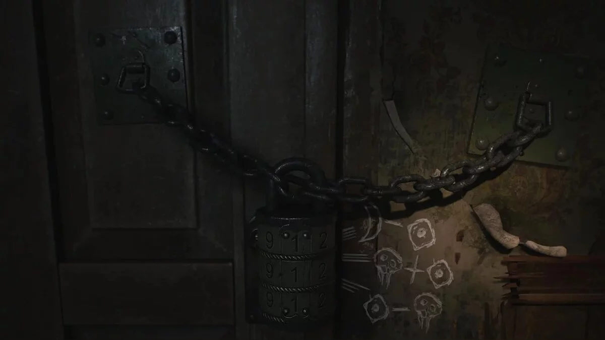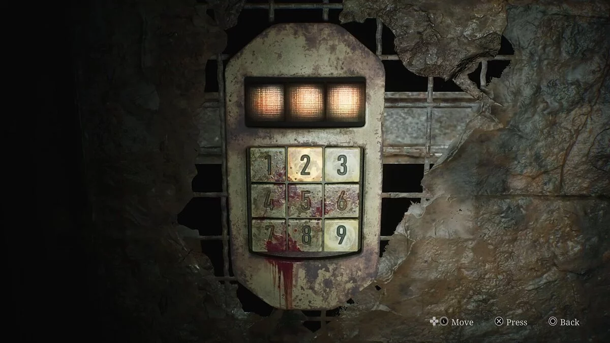 Спрыгнув вниз, вы увидите двери с отверстиями. Входите в ту, где горит свет. Идите дальше в ржавую дверь. Возьмите с середины комнаты ключ. Ваш фонарь погаснет, и вокруг появятся насекомые. Вам нужно быстро ввести код на замке, чтобы выбраться наружу. Внимательно осмотрите панель. Вам нужны клавиши, которые не заляпаны кровью: 2, 3 и 9. Код всегда устанавливается рандомным образом, поэтому нет точного правильного решения.