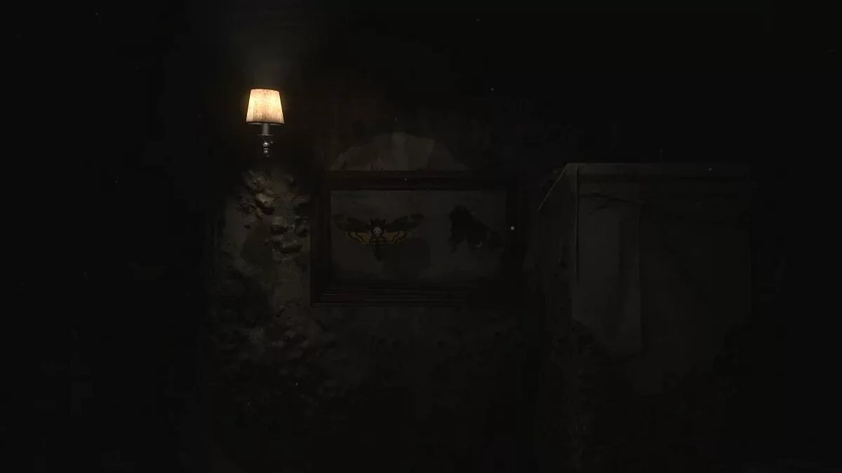 После того как вы войдете в 202-й номер, вас запрут на замок. Чтобы покинуть место, вам нужно найти код от замка. Справа от него есть подсказка, связанная с тремя числами, которые нужно ввести. То есть вам нужно посчитать мотыльков с отметинами, как на рисунке и прибавить/отнять число с игральной кости. Насекомые находятся на картинах и в деревянных ящиках. Отодвиньте шкаф возле стены, чтобы добраться до второй комнаты. Теперь посчитайте всех мотыльков и решите простенькие примеры.