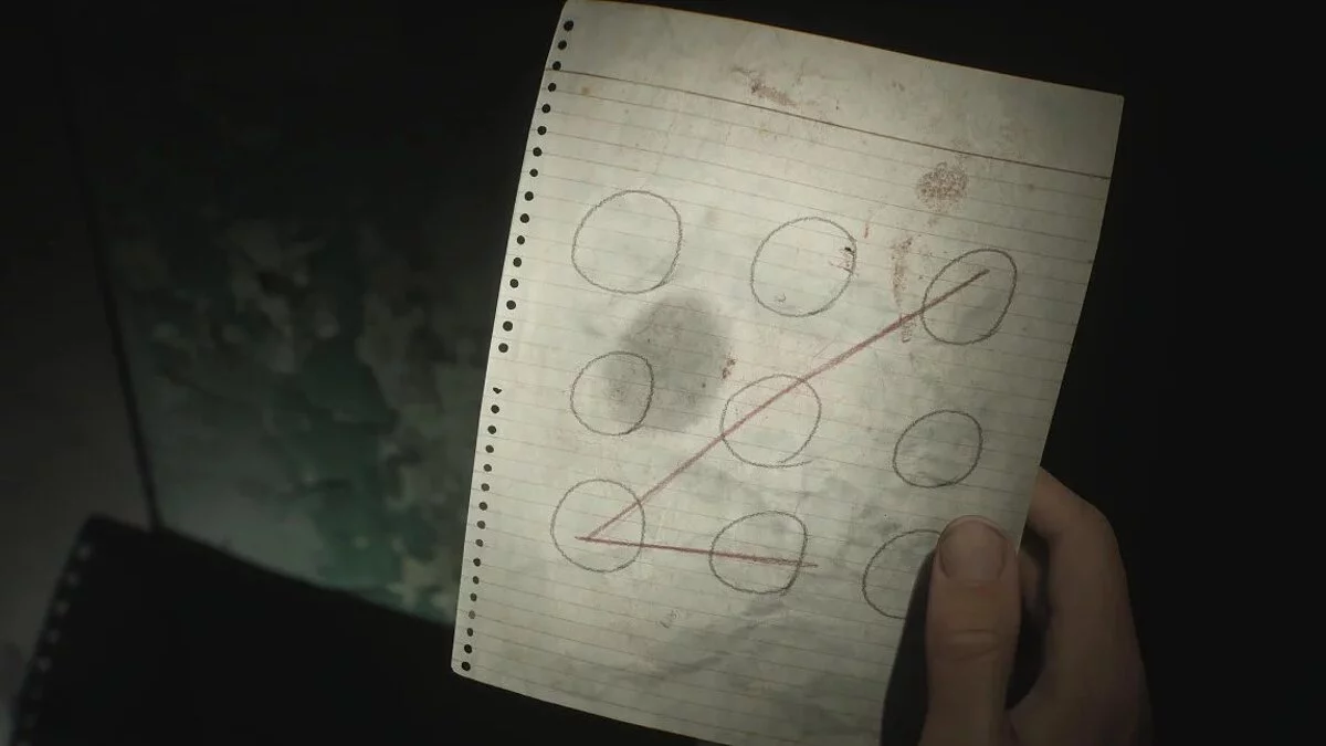 Чтобы попасть в медпункт на втором этаже, вам нужно ввести код на цифровом замке в кабинете медсестер. Чтобы его подобрать, вам потребуется текстовая подсказка, которая лежит в комнате отдыха для врачей. Вы сможете попасть в нее, после изучения бассейна и оранжереи. На бумаге будут линии с кнопками, которые прямо укажут на последовательность введение чисел.