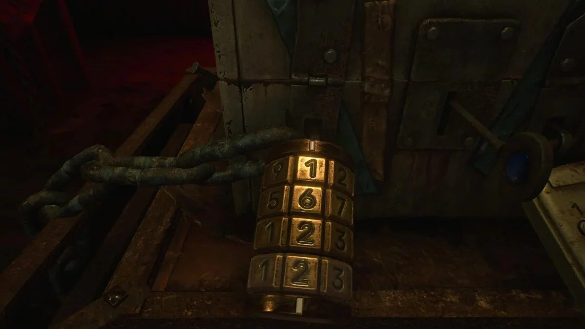 На втором этаже, рядом с местом для медсестер вы найдете ящик на цепях. Он заперт на кодовый замок, цифровую панель и ключ. Вам нужно собрать все элементы решения головоломки, что пройти дальше по сюжету.