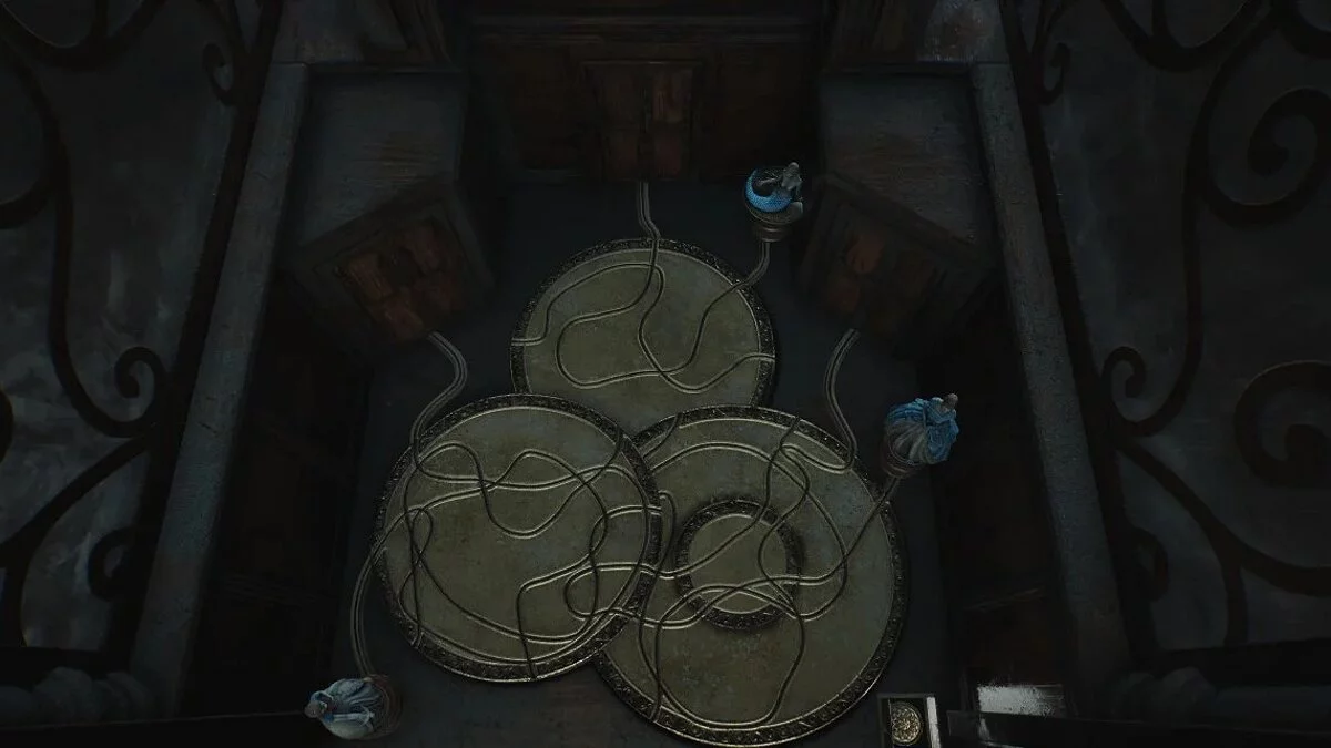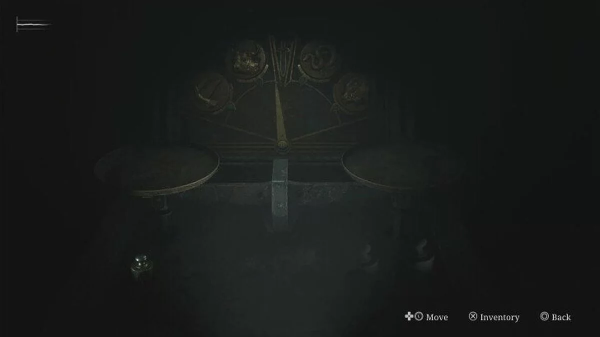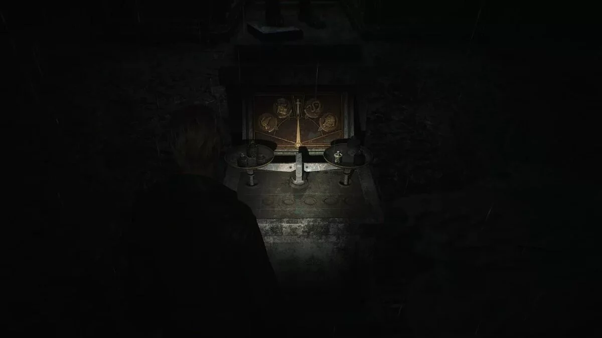 Вы найдете весы во дворе тюрьмы. Снимите с них ткань, чтобы осмотреть детали. Перед весами есть подставка под гири. Пока там лежит только одна. Вам нужно найти остальные, чтобы пройти головоломку.