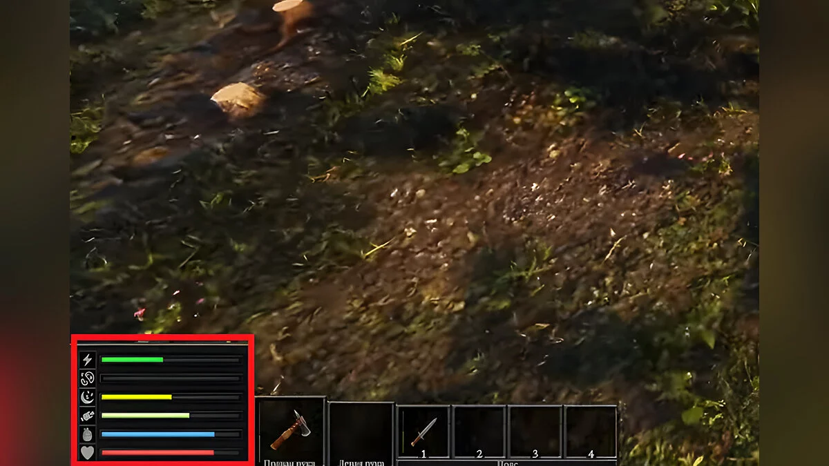 Взаимосвязи между этими пунктами очевидны: если вас настигли голод или жажда, персонаж теряет энергию и умирает. В случае, если вы редко спите, то персонаж начнет терять максимальный уровень выносливости, что чревато меньшей продуктивностью.
