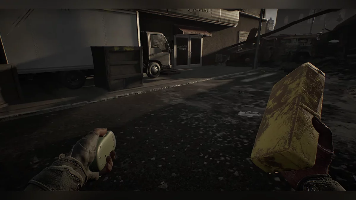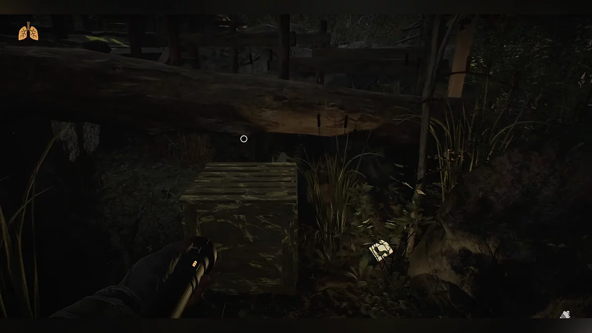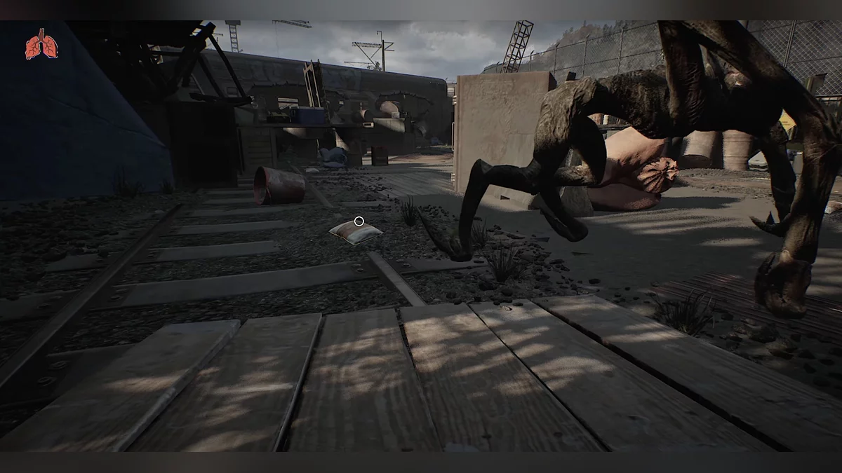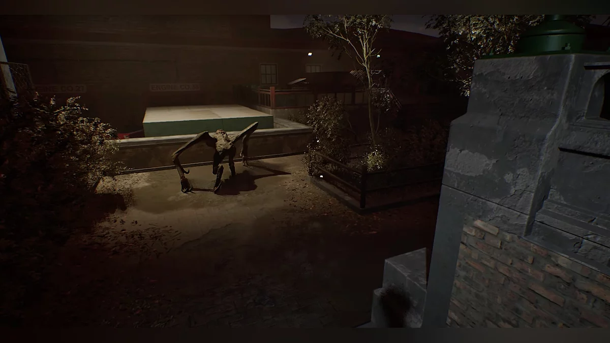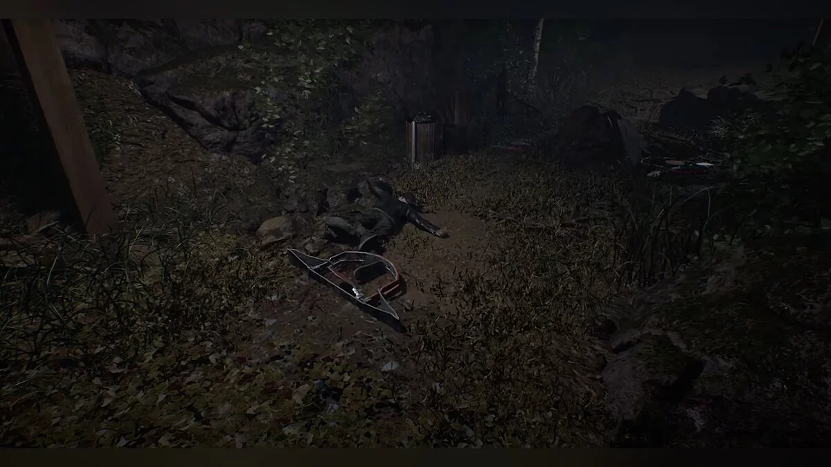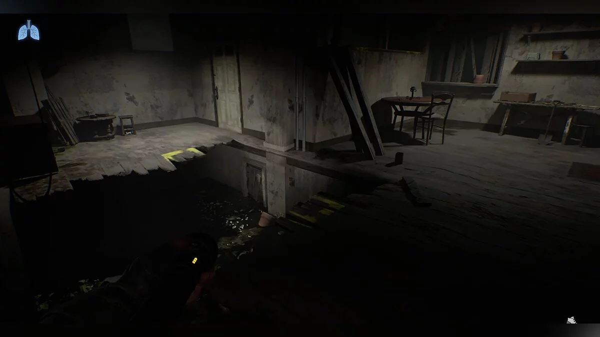 Справа около стены переносная лестница, подберите ее. Выход из дома закрыт — нужен ключ. Его можно найти рядом с трупом человека неподалеку, однако как только вы туда направитесь, монстр проломит стену. Вновь отвлеките его чем-нибудь метательным. Существо далеко не уйдет, поэтому вам нужно выйти так, чтобы вас не заметили вместе с лестницей, а также не угодить в капканы и ловушки. Если все сделано правильно, вы в итоге вернетесь к закрытым воротам. Слева можно поставить лестницу и забраться. Оказавшись на другой стороне, идите вперед и протиснитесь между приоткрытой дверью и ящиками.