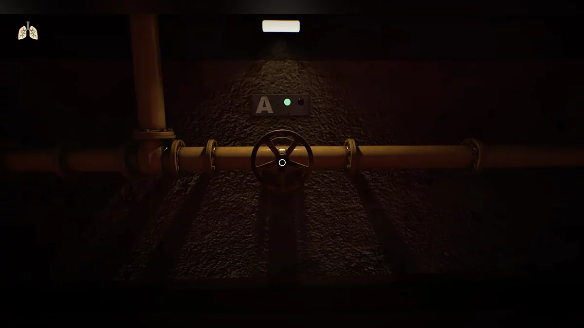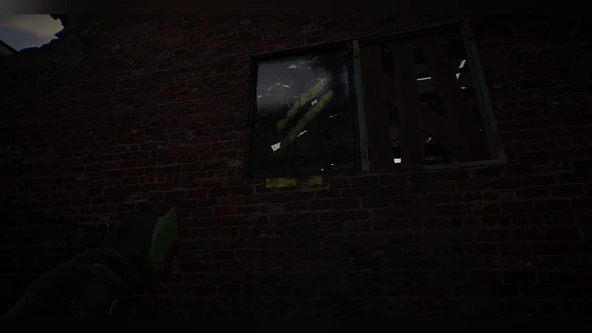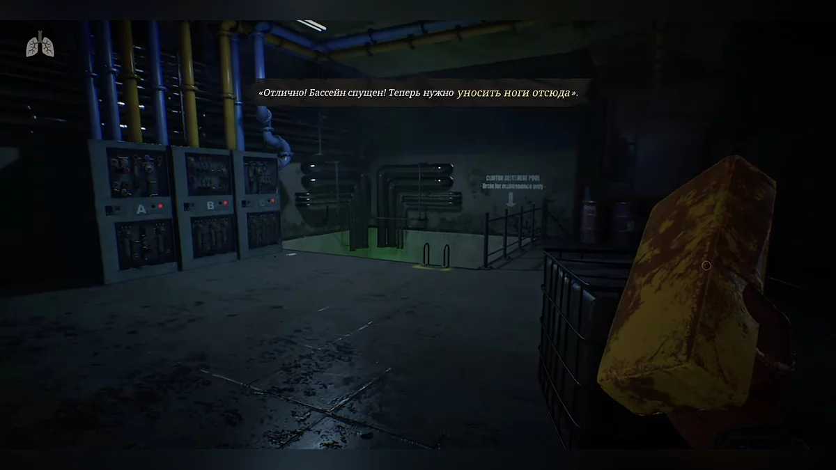 Отсюда поднимайтесь по лестнице напротив и попадете к месту с зеленым свечением. Там последний вентиль. Сразу же запустится разбрызгивать. Под струями можно прятаться от монстра. Справа от вентиля окно, которое нужно разбить кирпичом. Это будет шумно, но теперь у вас есть дополнительные места для пряток.