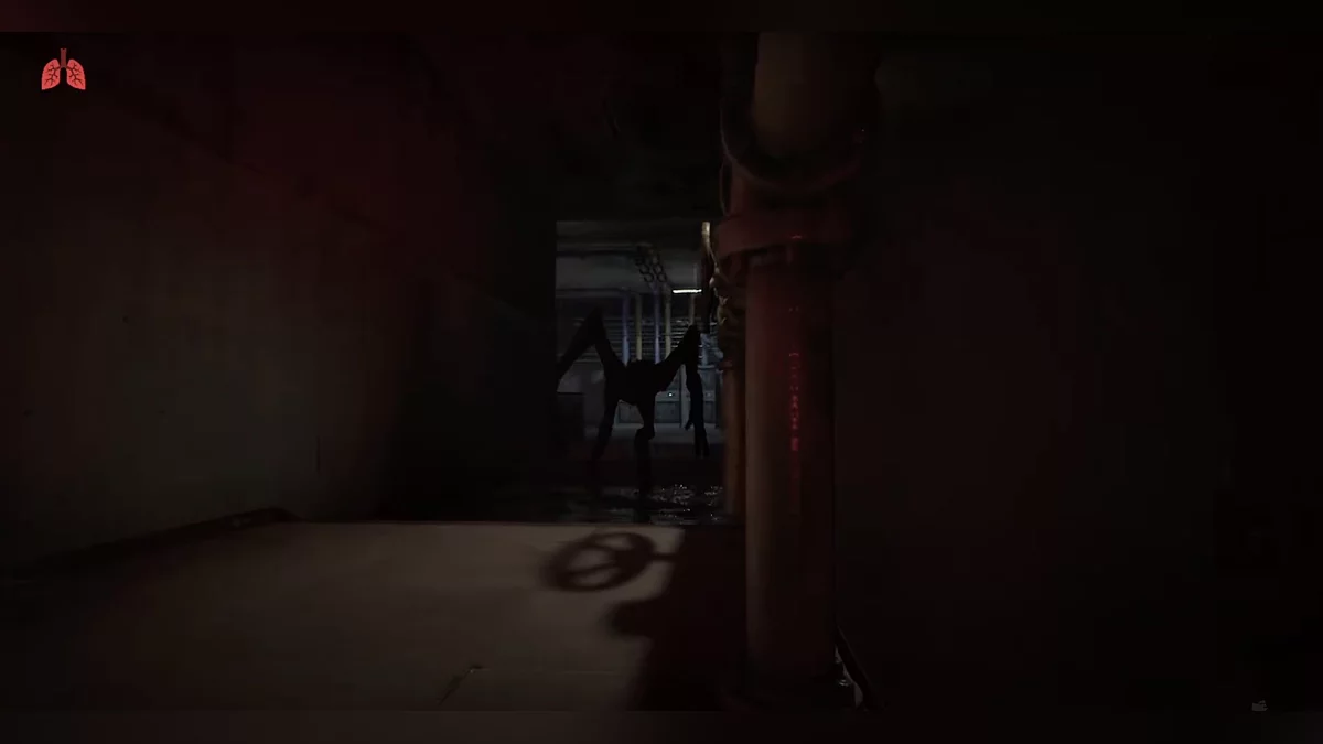 В полуприсяде отходите назад, а затем спрячьтесь под струями воды из трубы слева или справа. Монстр начнет удаляться, вам нужно сразу же начать двигаться вперед, так как когда существо вернется в комнату, развернется и снова начнет идти на вас. Проскользните между ним и стеной, после чего основное задание обновится на «найти вентили».