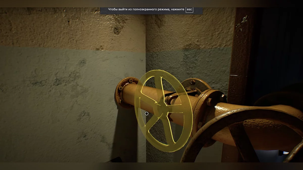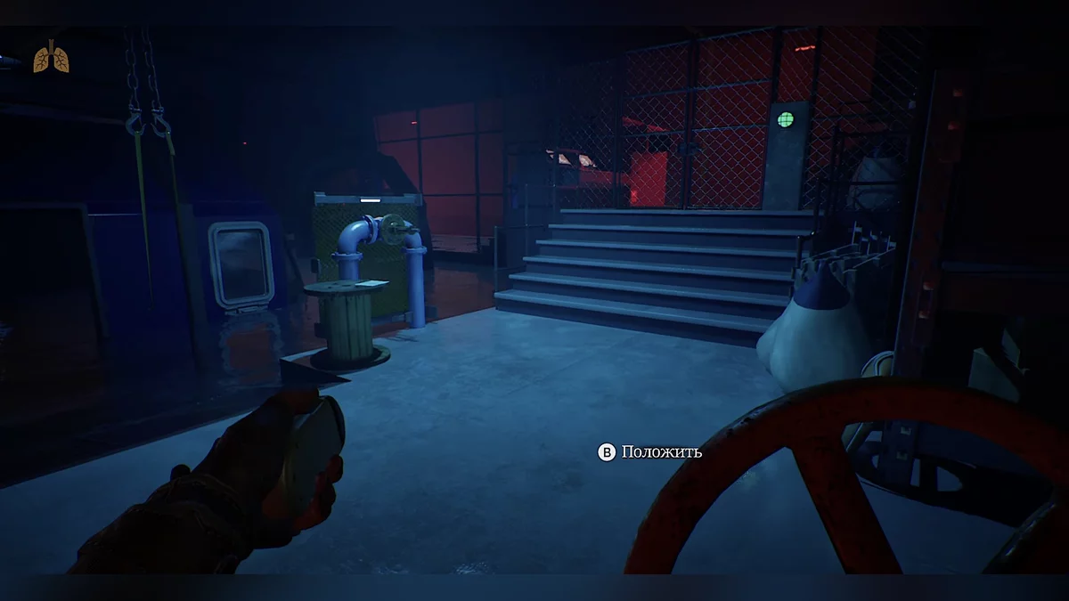 Слева вновь будет струи воды из труб, за ними появится существо, но услышать вас оно не сможет. Идите направо. В конце коридора будет решетчатый забор. Внизу справа есть дыра, через которую можно пролезть. Сразу после двигайтесь налево и увидите вентиль, который надо закрутить, чтобы пропала вода из труб.