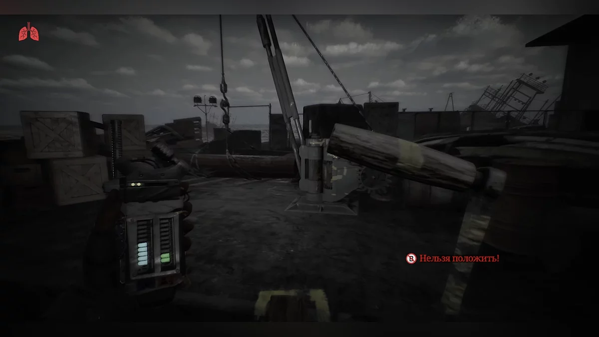 Вы получили противогаз, который защищает от дыма, однако игналяторами вы пользоваться не сможете. Придется добраться до лодки как можно быстрее.