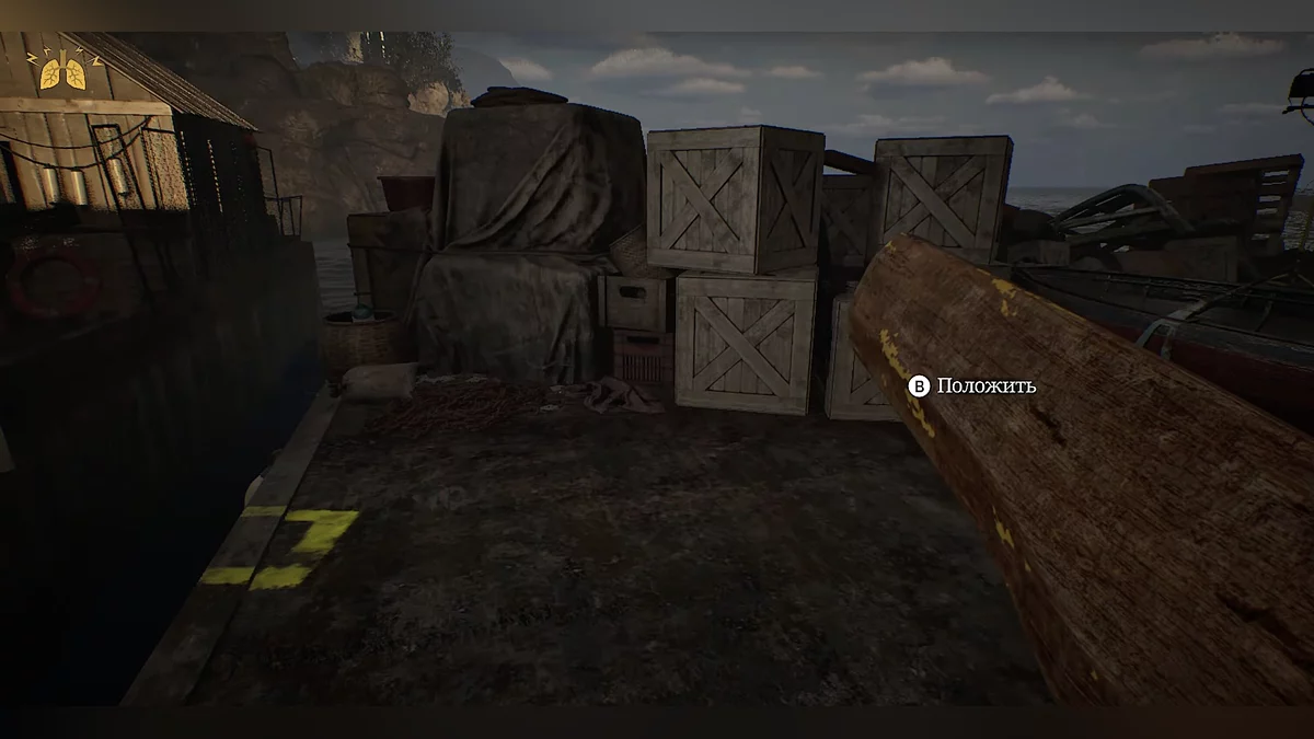 Откройте решетку перед вами и запустите генератор. Возвращайтесь через решетку и поворачивайте налево в дверь. Вы окажетесь в задымленном помещении. Героиня подскажет, что нужно скорее к лодке, однако по территории рыщет существо, поэтому подберите бутылку и не спешите слишком сильно. Используйте маркер цели, чтобы легче ориентироваться. В конце помещения потребуется свернуть налево. Прямой проход к лодке преграждает вода, по настилу можно спуститься на плавучие платформы, а оттуда пройти направо и подобрать доску.