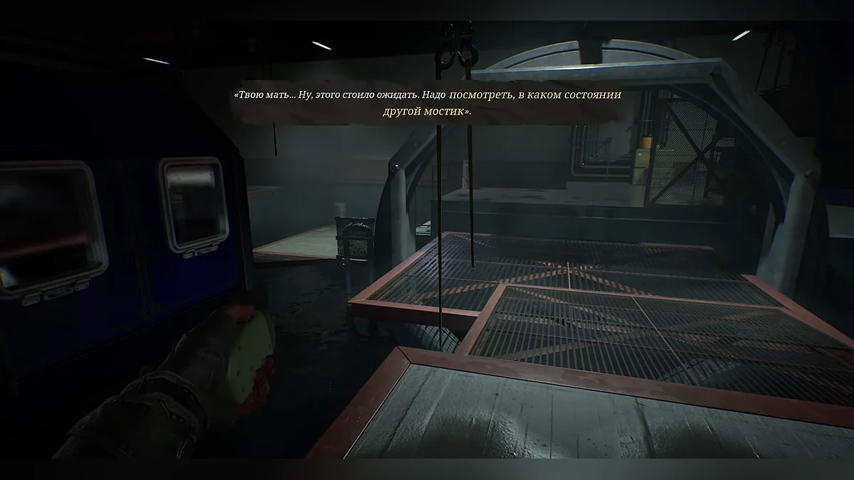 В новом вагоне идите направо. Монстр вновь патрулирует окрестности. Вам нужно пройти по прямой, преодолевая преграды и прячась от существа, до следующего вагона. Внутри идите налево до конца. Вы окажетесь в вагоне, который лежит на боку. Спрыгните через разбитое окно на нижнюю часть моста и проберитесь по балкам, ориентируясь на подкрашенное желтым место. Там можно вновь вернуться в вагон через другое разбитое окно. Справа по разбросанным вещам можно подняться на «крышу».