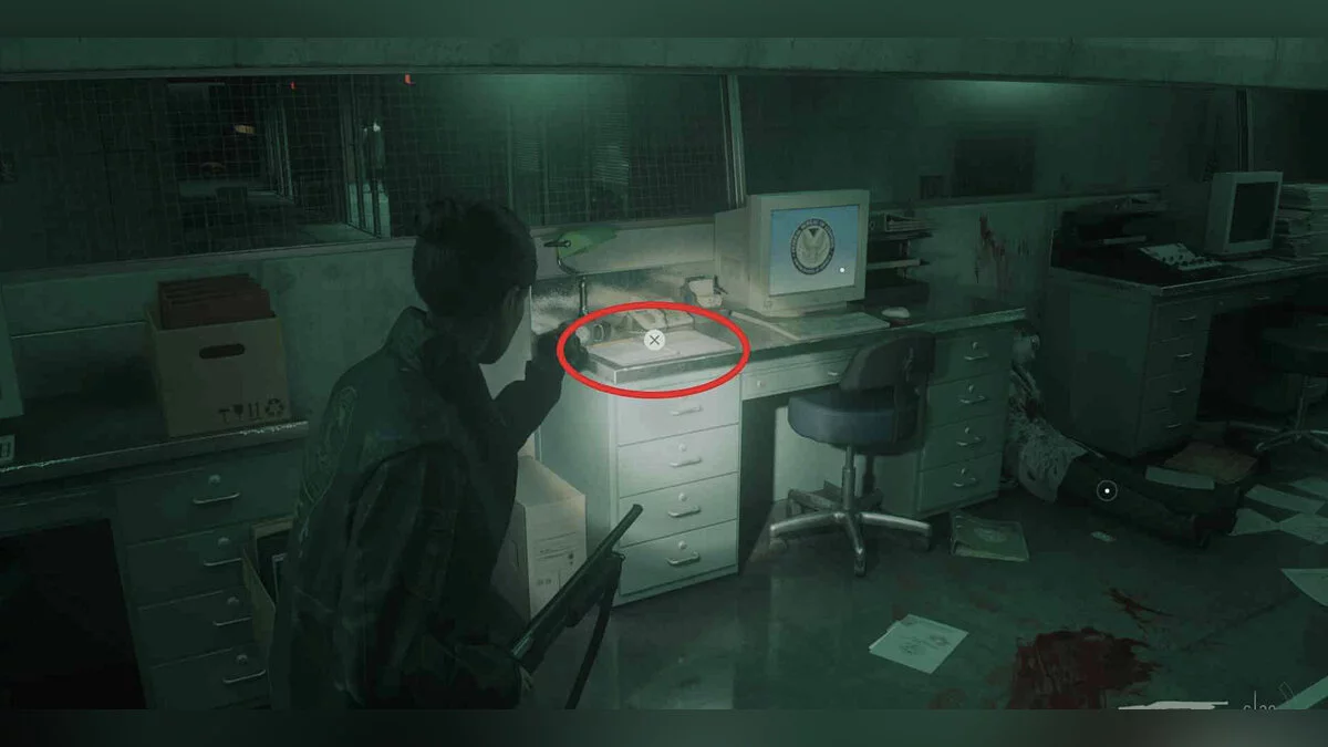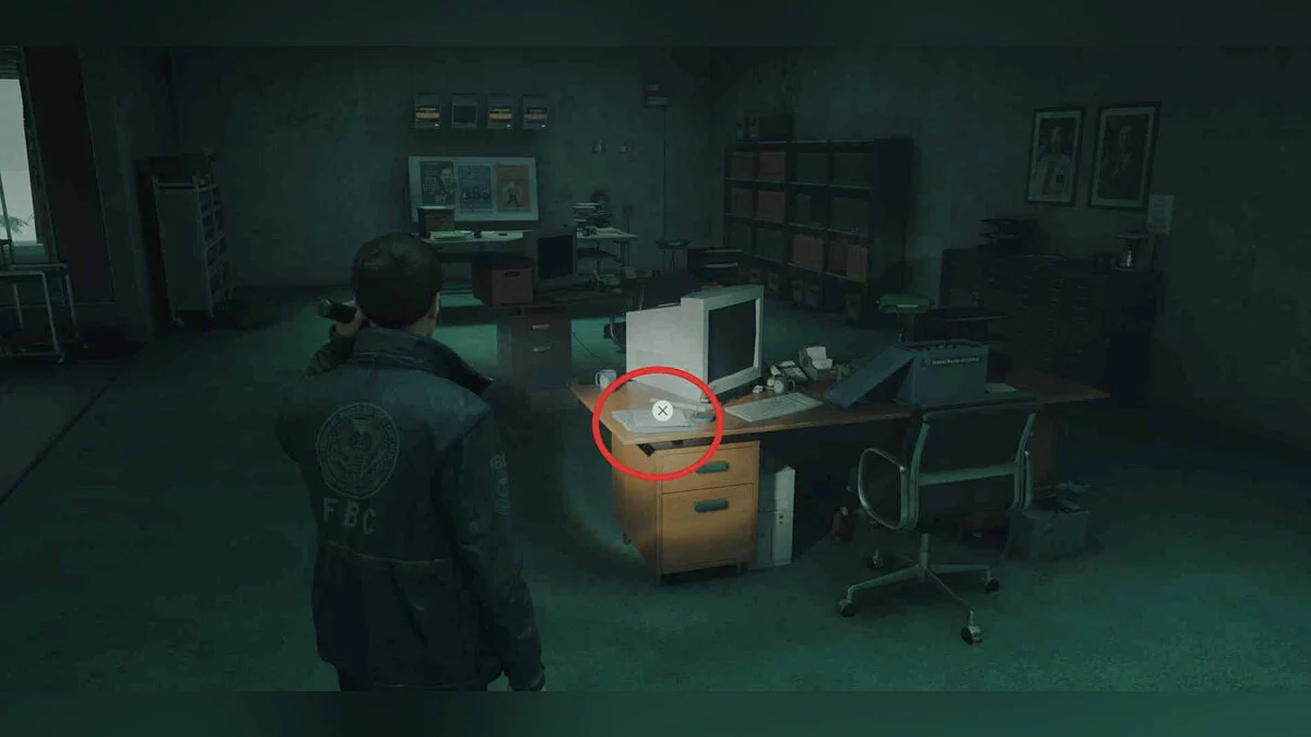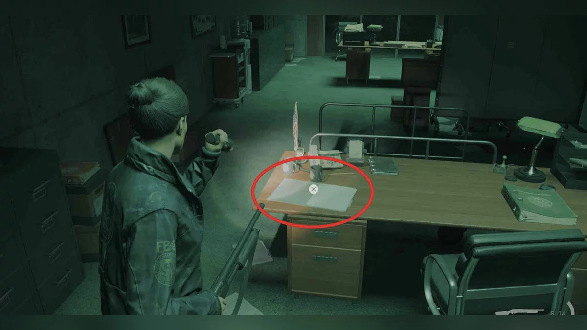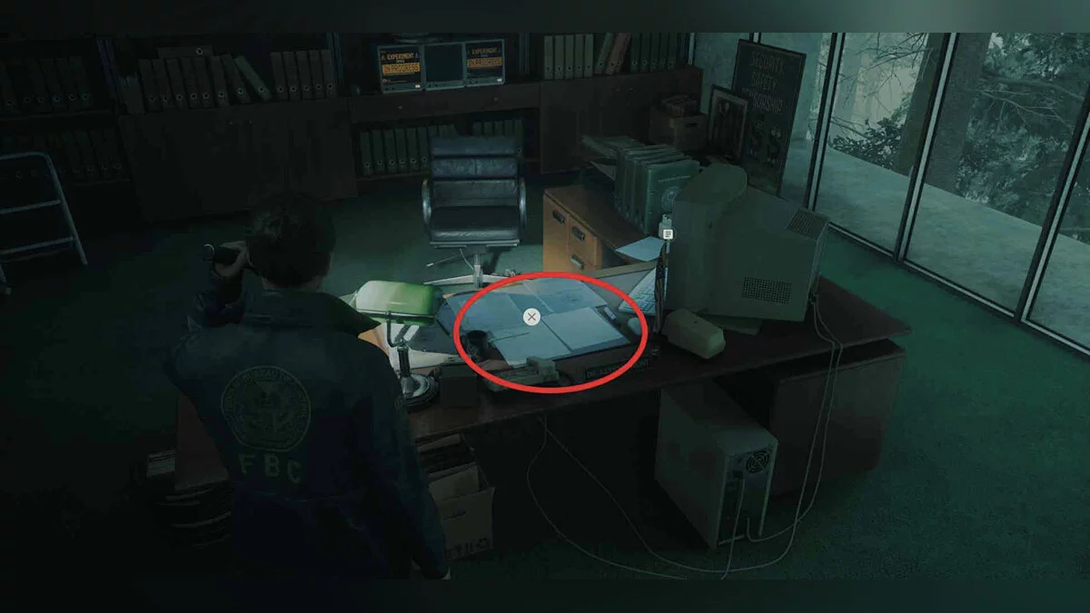 Теперь подойдите к центральному столы комнаты, расположенной напротив предыдущего офиса.