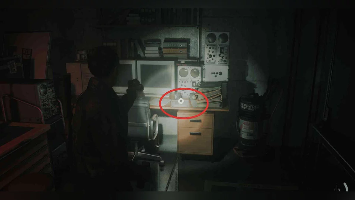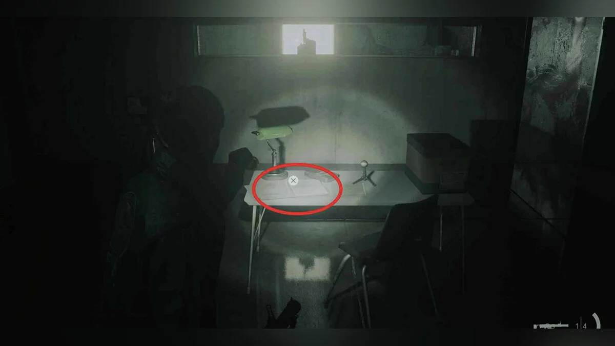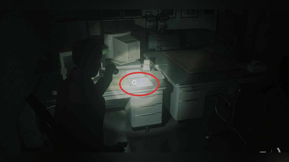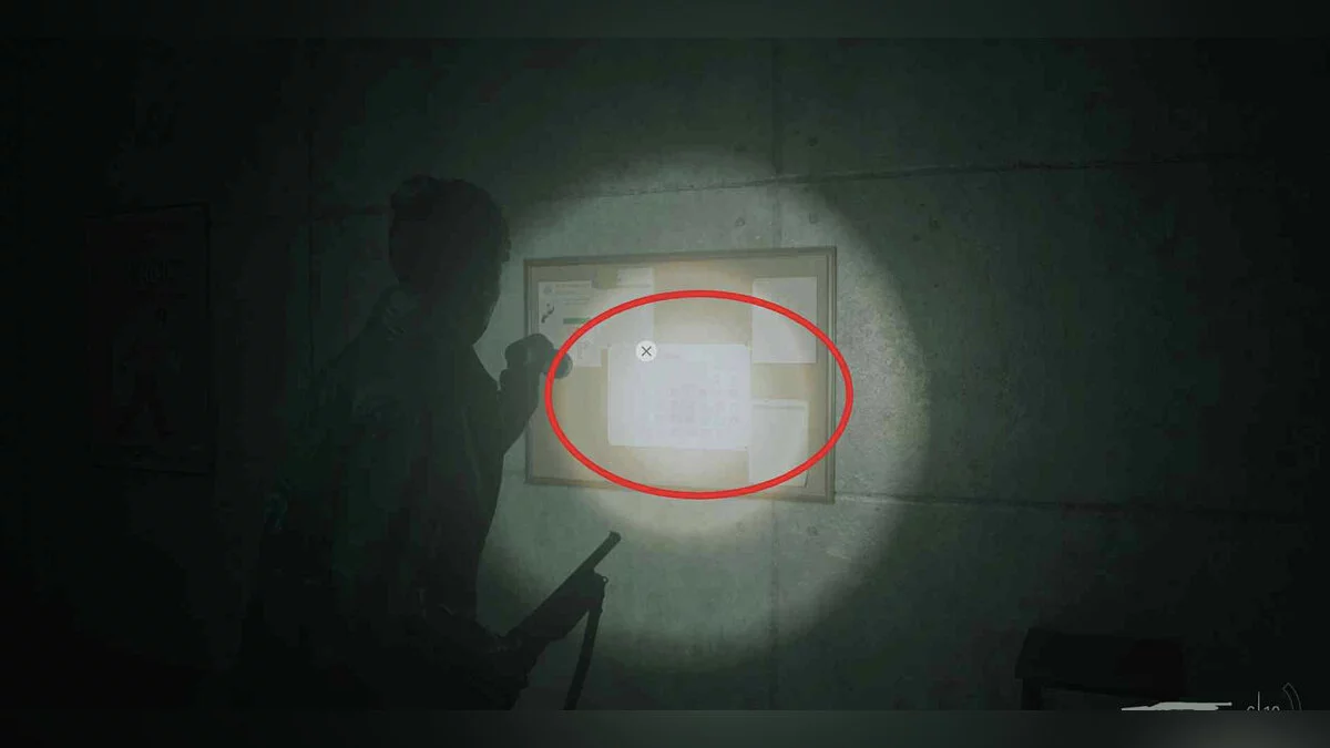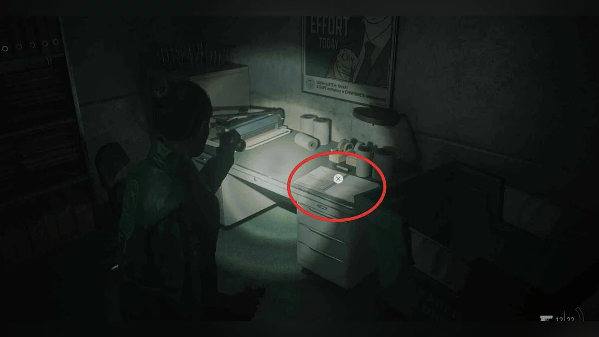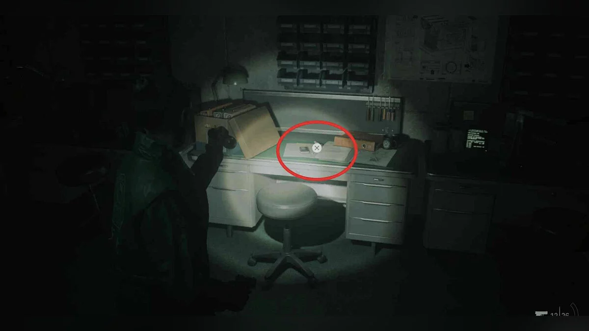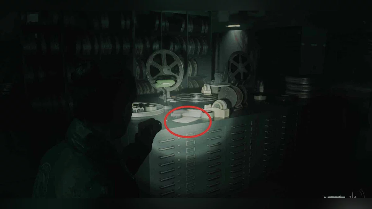 Отключив свет в кабинете благодаря переключателю в коридоре, вернитесь туда и обратите внимание на листок на полу прямо перед проектором.