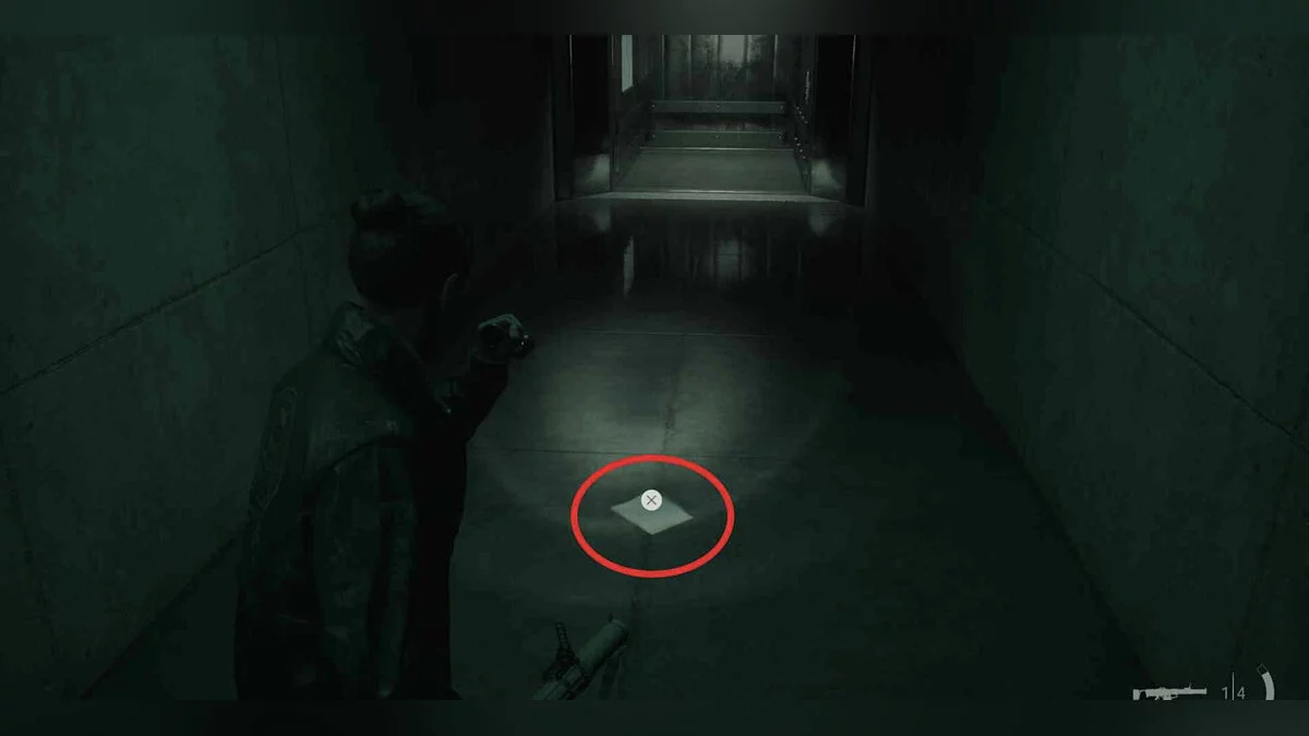 После окончания сюжетного диалога развернитесь к лифту и обратите внимание на лежащий перед вами на полу листочек.