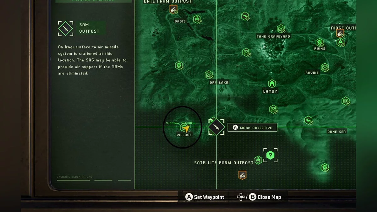 Отправляйтесь в локацию «Деревня» на юго-западе. Это один из вражеских лагерей.