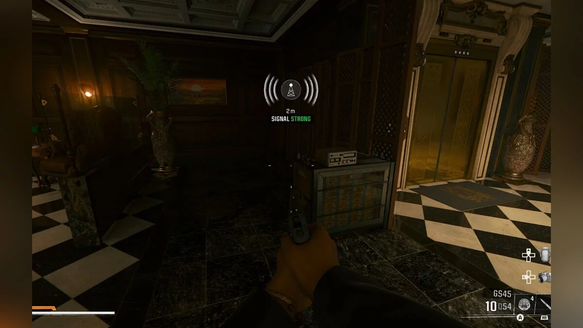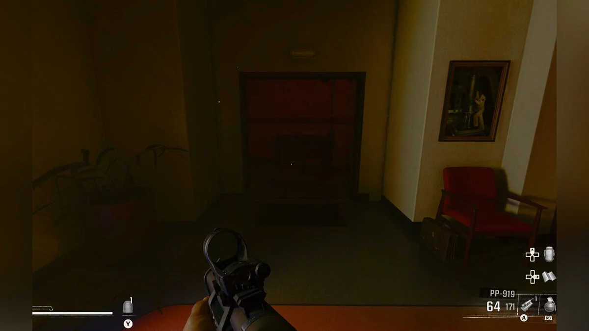 Получив код, обойдите лифт с другой стороны и найдите сейф, который спрятан в углу комнаты рядом с диваном.