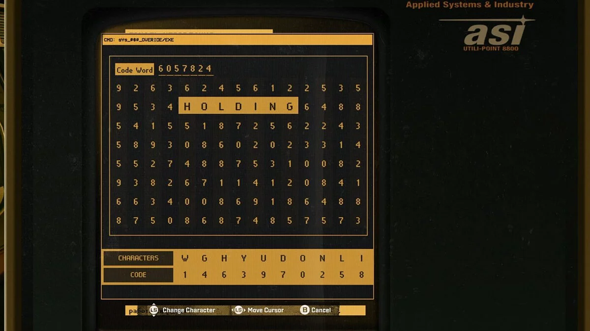 Это откроет секретную дверь, ведущую в подвал под домом. После этого вам нужно решить головоломку с шифром на двери справа от вас, когда вы достигнете перекрестка в бункере. Решить данный шифр достаточно просто — просто сопоставьте цифры в кодовом слове с буквами внизу, чтобы получить нужное вам слово.