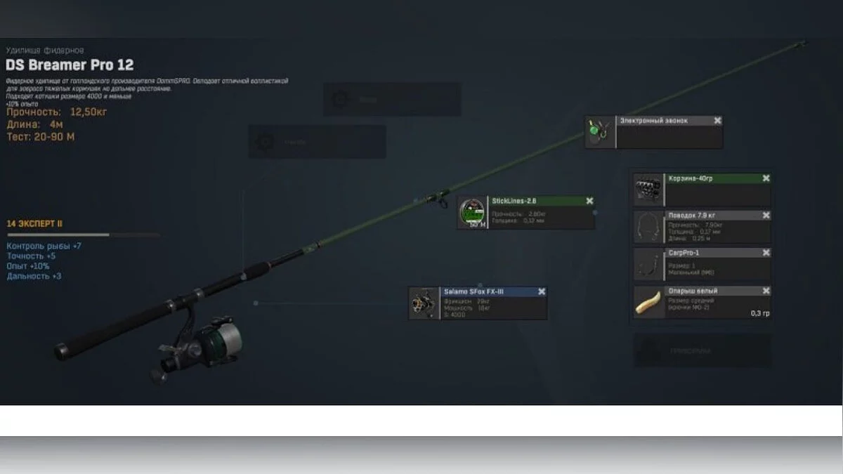 Пока доступно по одной вещи каждого типа но в разработке механки получения дополнительных единиц. Так же они подвержены износу и после полного истощения прочности подлежат ремонту так же как и любая снасть, за игровую валюту или ремнаборы. Для них подходит любой универсальный ремнабор. Для открытия некоторых рецептов приманок необходимы другие достижения, например для крафта кастера нужно получить рецепт «Вторая форма». Так же рецепты этих вещей можно купить в магазине в разделе Торговля.
