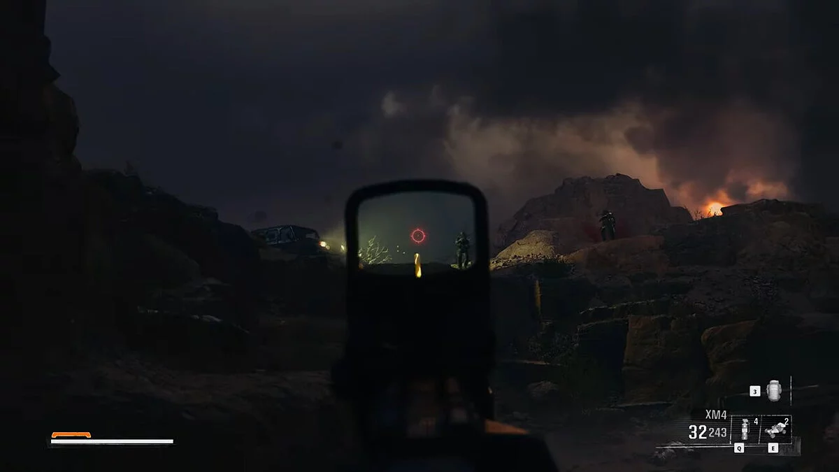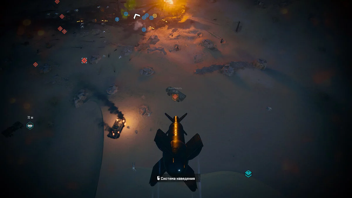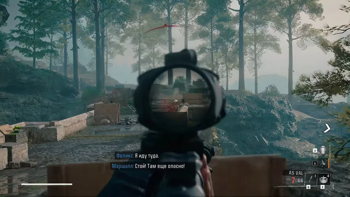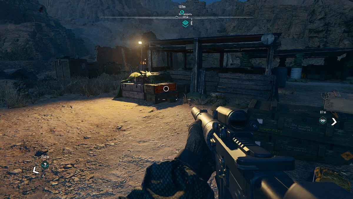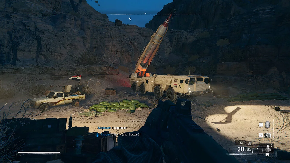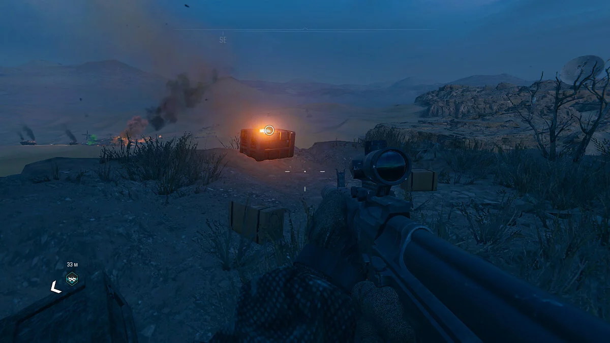 К югу от этого места вы можете увидеть маркер около гор. Отправляйтесь туда и заберитесь на возвышенность, чтобы найти снаряжение внутри ящика. К востоку от этого места находятся еще два маркера — значок вопросительного знака указывает на второй ящик. Последний маркер является точкой опоры ЗРК. Вызвав авиаудар, можно использовать ракеты для пуска в ЗРК.