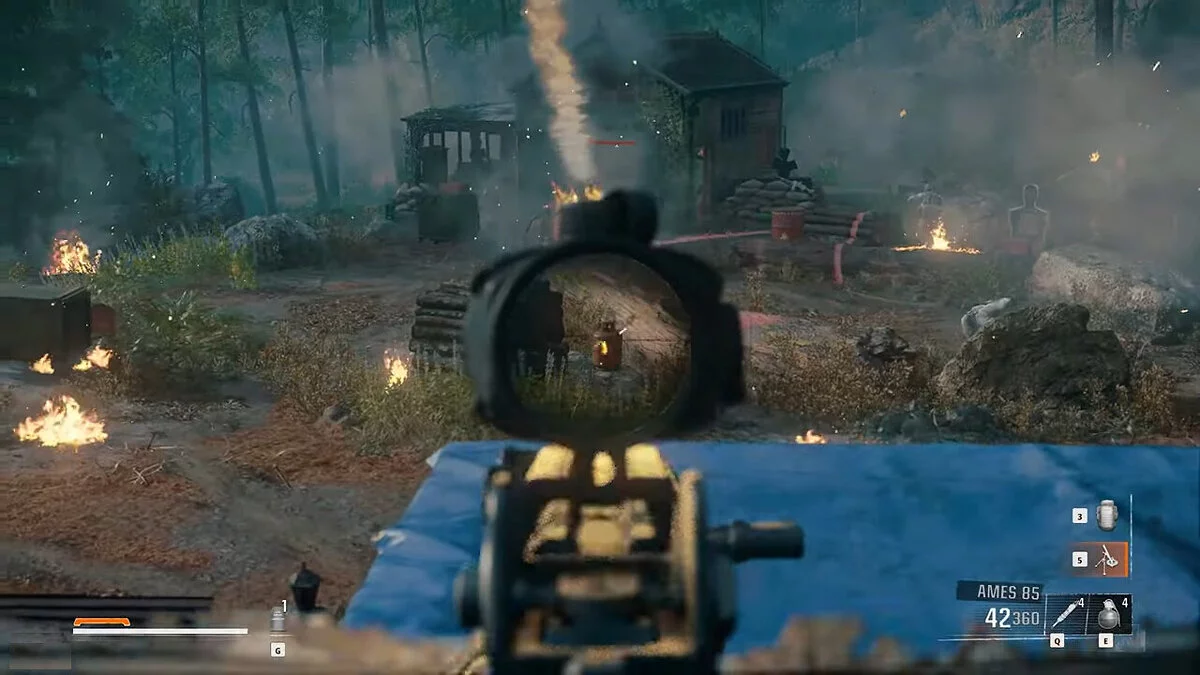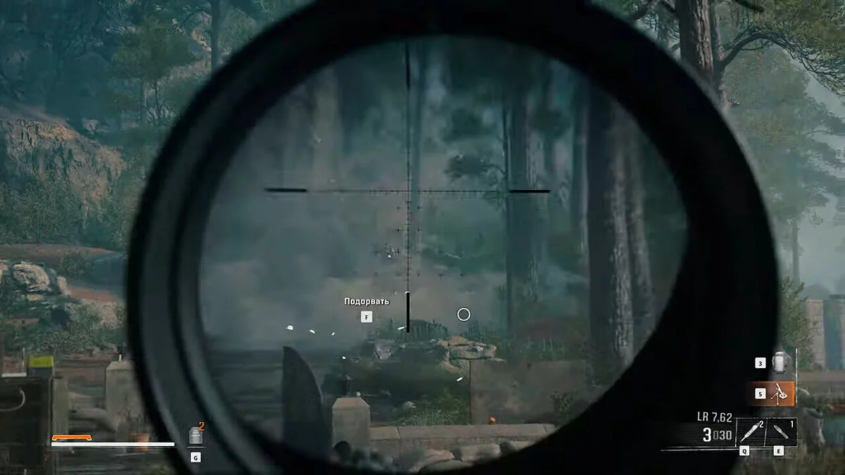 Отправляйтесь за напарниками по указанным меткам, прикрывая их, пока не появится тяжелая техника. Стреляйте по танку из ракетницы.