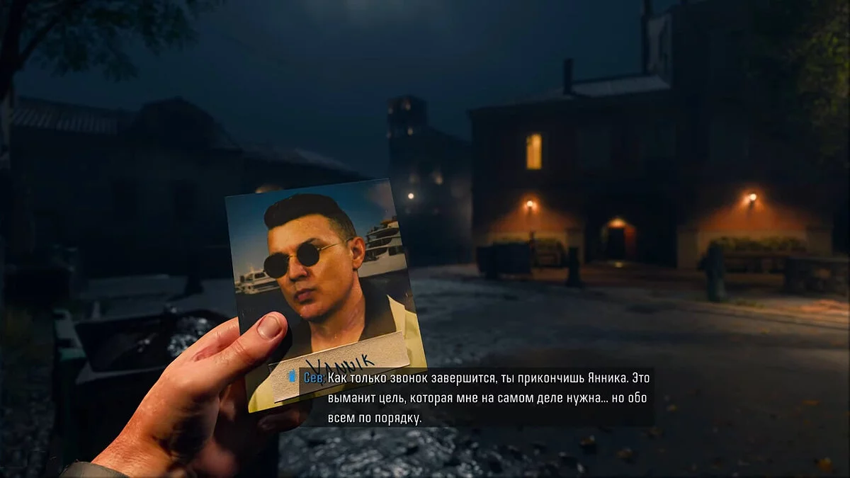 Начав испытание, смотрите катсцену. Вы ознакомитесь с персонажем по имени Яник Дюфор, брокером «Гильдии». Ваша основная задача — убить Яника.