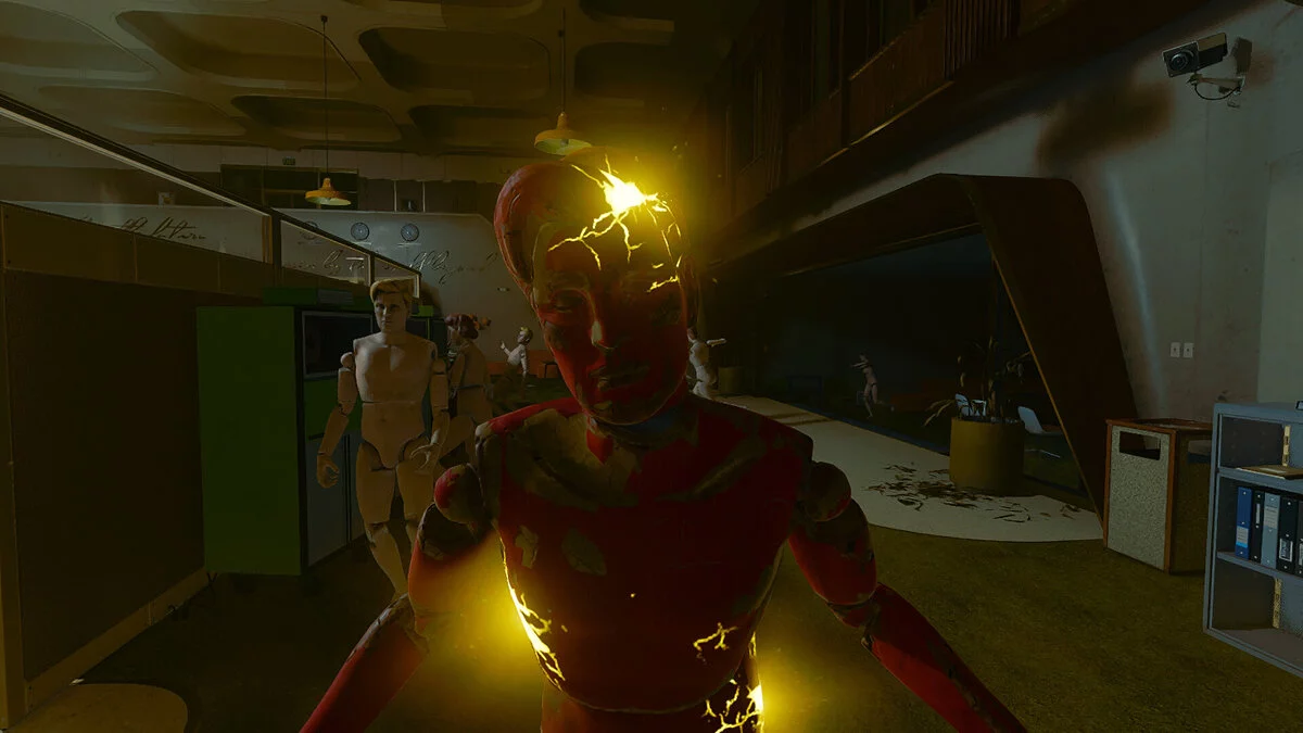 Собрав четыре отчета и разрушив все манекены, вернитесь к кабинету директора и положите их на место. Затем вам нужно поймать директора с помощью крюка. Нанесите урон трижды, чтобы превратить его и неразрушенные манекены в зомби. Будьте осторожны: теперь вся нечисть станет гораздо сильнее, поэтому старайтесь избегать близкого контакта. Используйте крюк для маневров и оставайтесь на расстоянии. Когда вы одолеете директора, заберите зеленую ключ-карту.