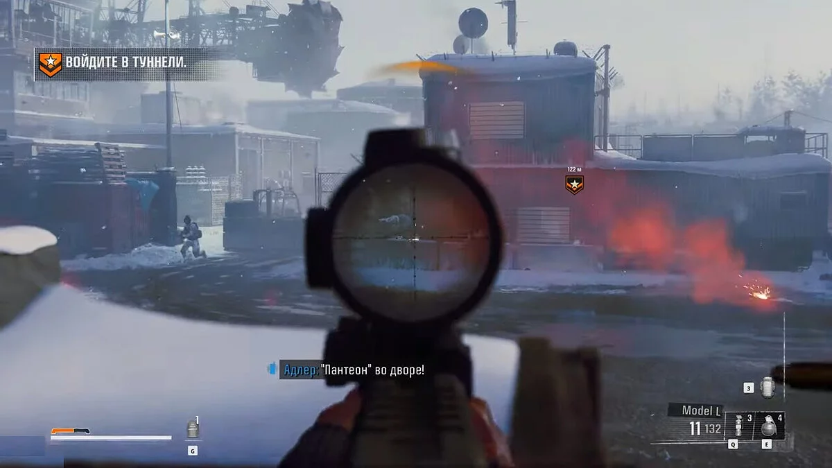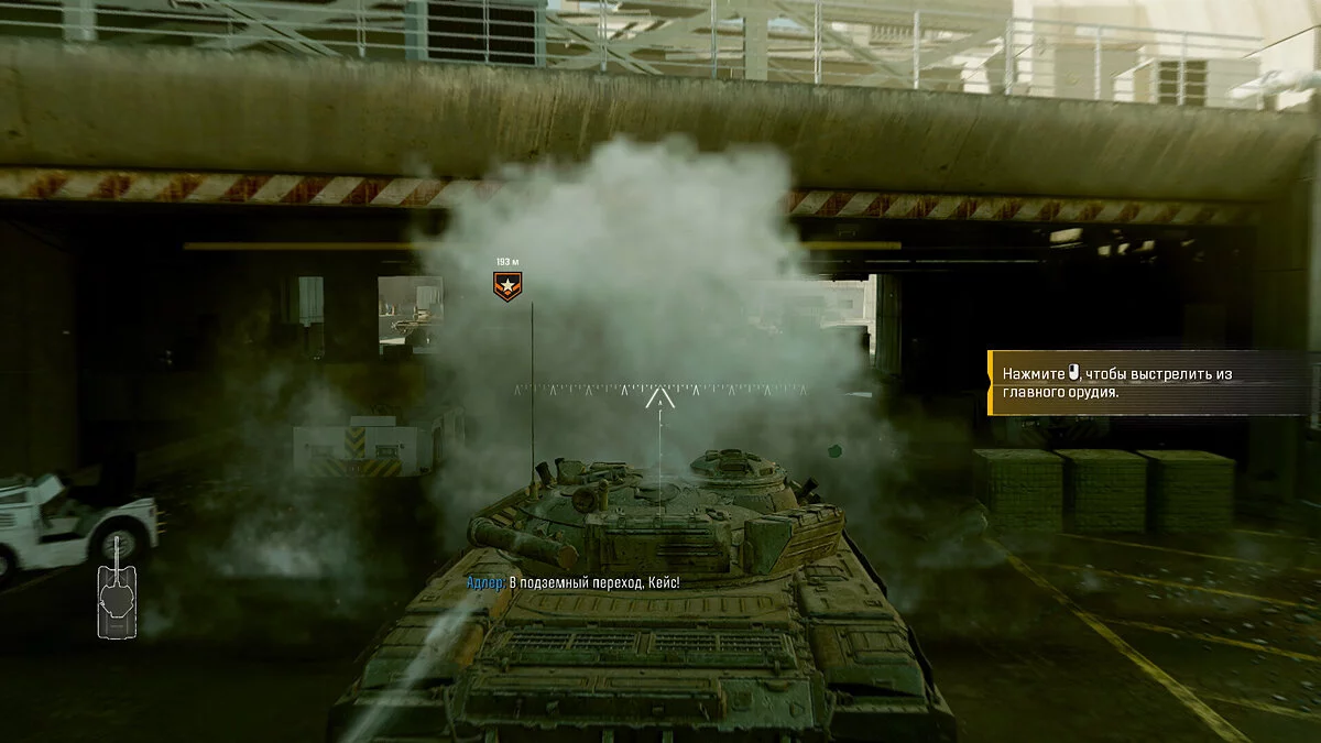 Постарайтесь выбраться из этого помещения, следуя за маркерами и устраняя врагов по пути. Добравшись до танка, запрыгните внутрь и направляйтесь к указанной точке через терминал. В какой-то момент вы заметите самолет, в котором скрывается Гусев.