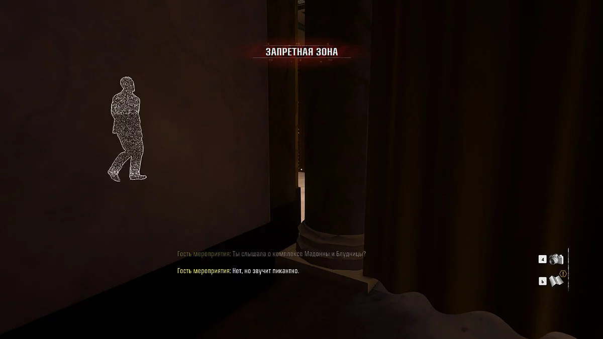 Следуя этим путем, вашей задачей станет получить пальто губернатора из раздевалки. Отправляйтесь в гардероб, слева от него находятся шторки, пройдите через них чтобы попасть внутрь. Здесь вы увидите врага — ликвидируйте цель и осмотрите пальто, чтобы найти записку.