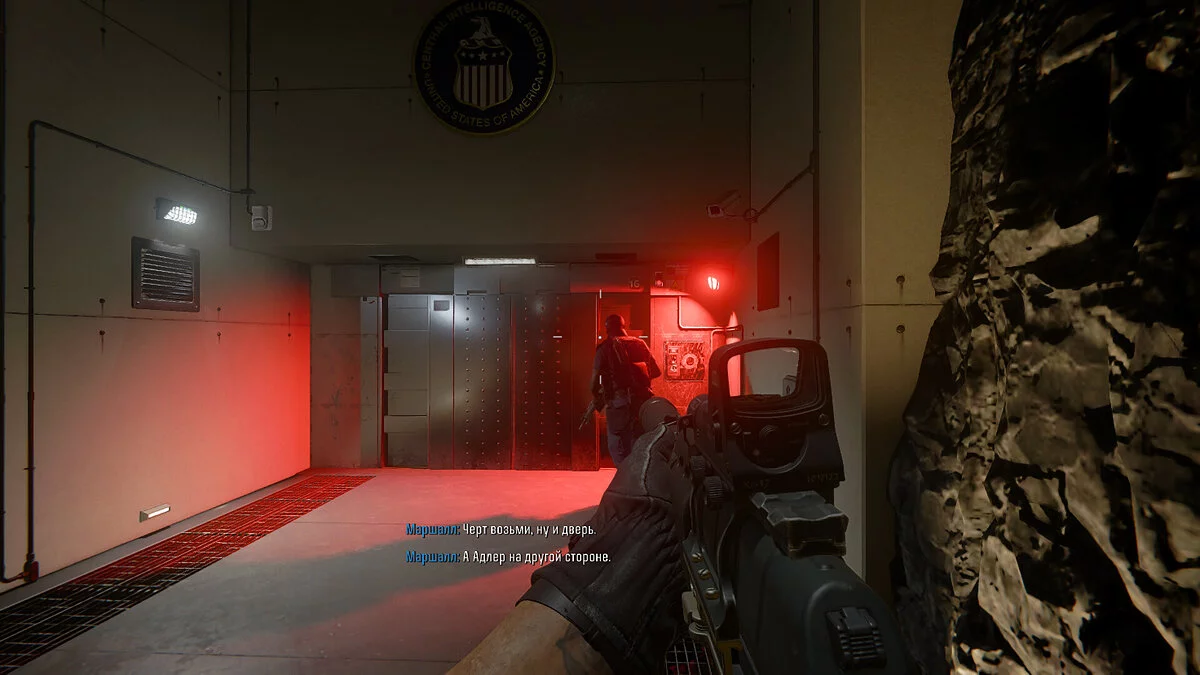 При помощи троса спуститесь ниже и примените фотоаппарат на сканере. Как только Маршалл уйдет, вам нужно действовать скрытно. Отправляйтесь в помещение справа и избавьтесь от врагов на первом и втором этаже. После непродолжительной сцены следуйте за Маршаллом, взломайте замок слева и заберитесь на этаж выше.