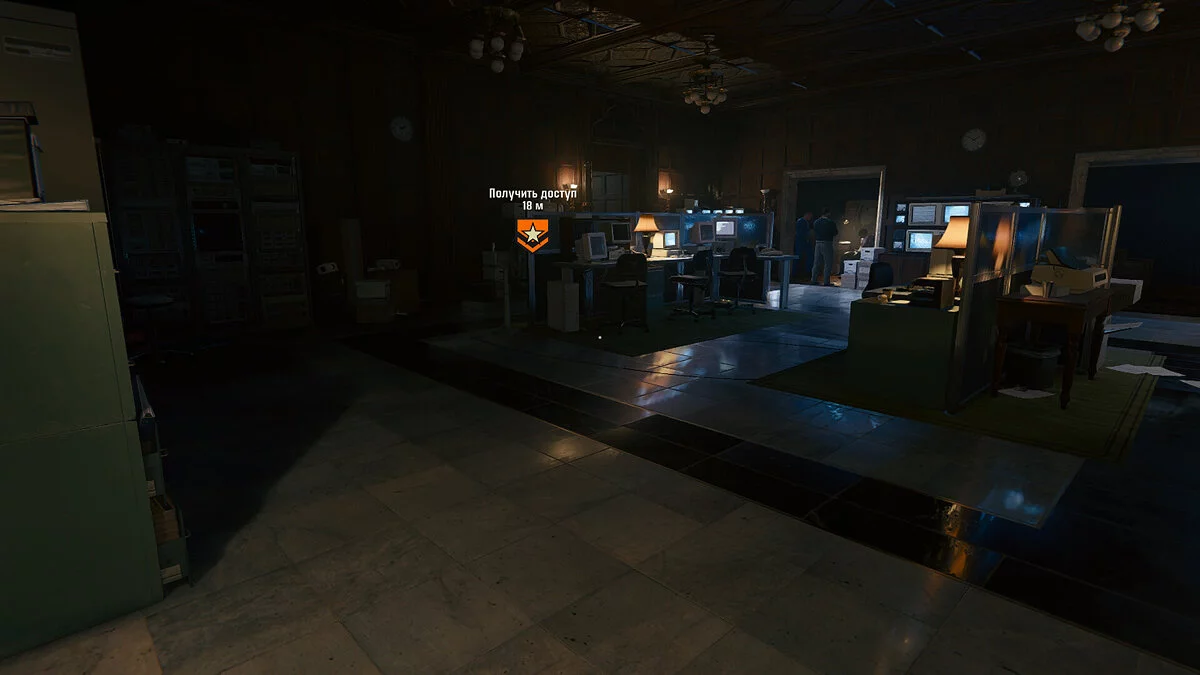 Теперь вы играете за Феликса. Войдите в отмеченную дверь, чтобы найти и взаимодействовать с панелью, а затем отправляйтесь к запертой двери. Устраните всех врагов, после чего взломайте кодовый замок. Когда вы войдете в помещение, вы увидите компьютер. Чтобы получить к нему доступ, введите пароль — «Пропуск» и «Копия». После этого можете направляться к барной стойке.