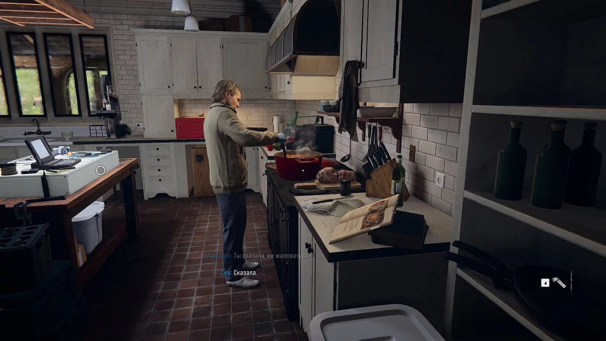 Поговорите с напарниками, выслушав их мнения и советы, а также улучшите свое снаряжение, чтобы быть готовыми к финальному заданию.