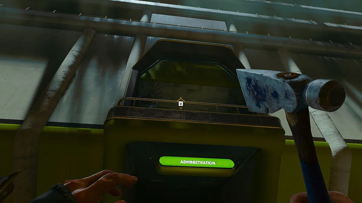 Отправляйтесь в конец западного крыла и ответьте на телефонный звонок. Затем используйте крюк, чтобы притянуться к балкону над вывеской «Администрация» и ответьте на ещё один телефонный звонок. Спуститесь вниз и найдите кабинет директора справа.