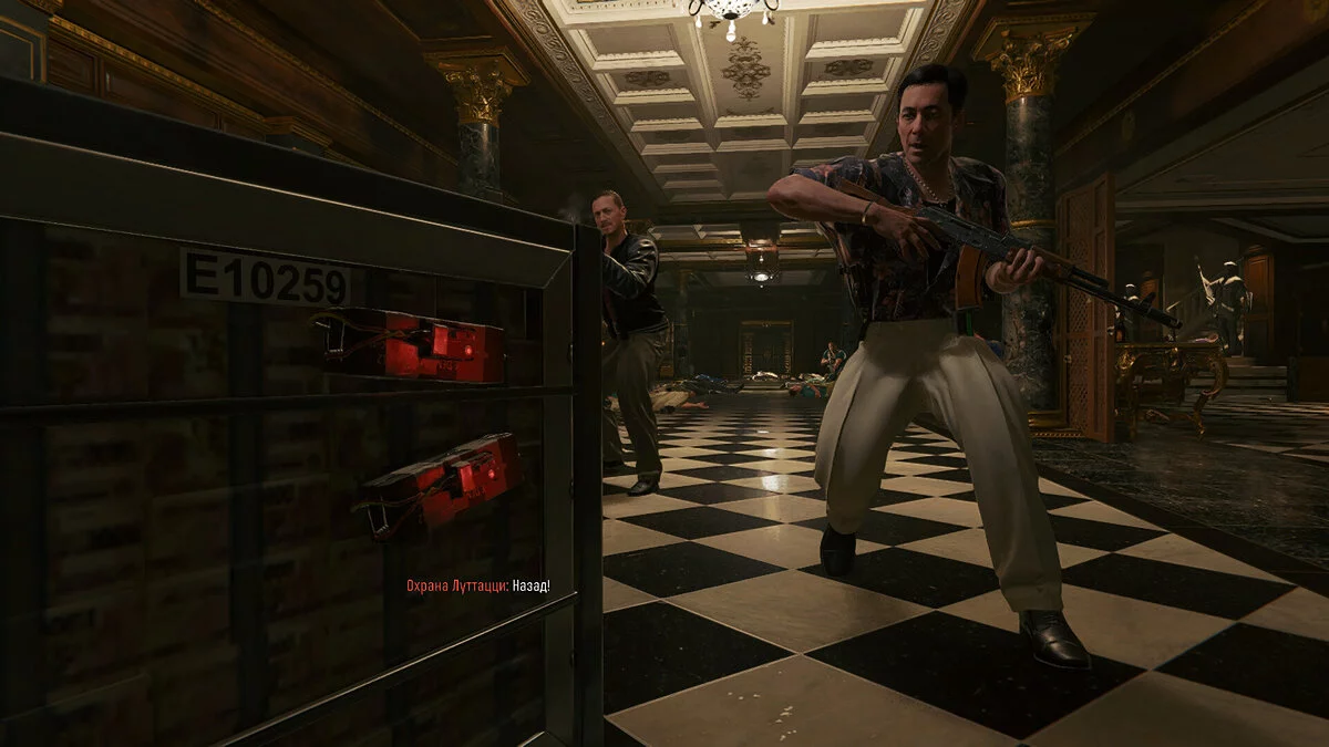Теперь вы продолжаете игру за Кейса. Взломайте замок двери, войдите внутрь и ликвидируйте врага. Поднимитесь на этаж выше, используя лестницу, продолжая устранять оппонентов на своем пути. Войдите в хранилище и осмотрите отмеченную ячейку. После этого ваша задача — выбраться из казино. Просто двигайтесь по указанным точкам, оставаясь внимательным и готовым к встрече с новыми противниками.