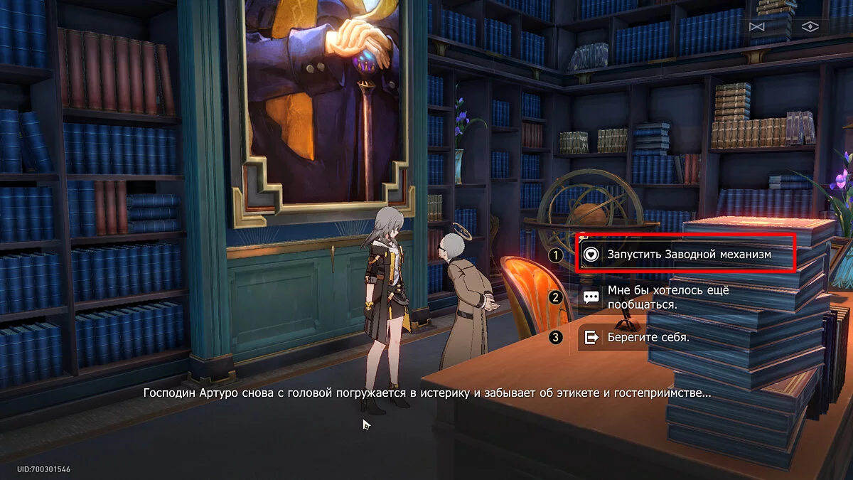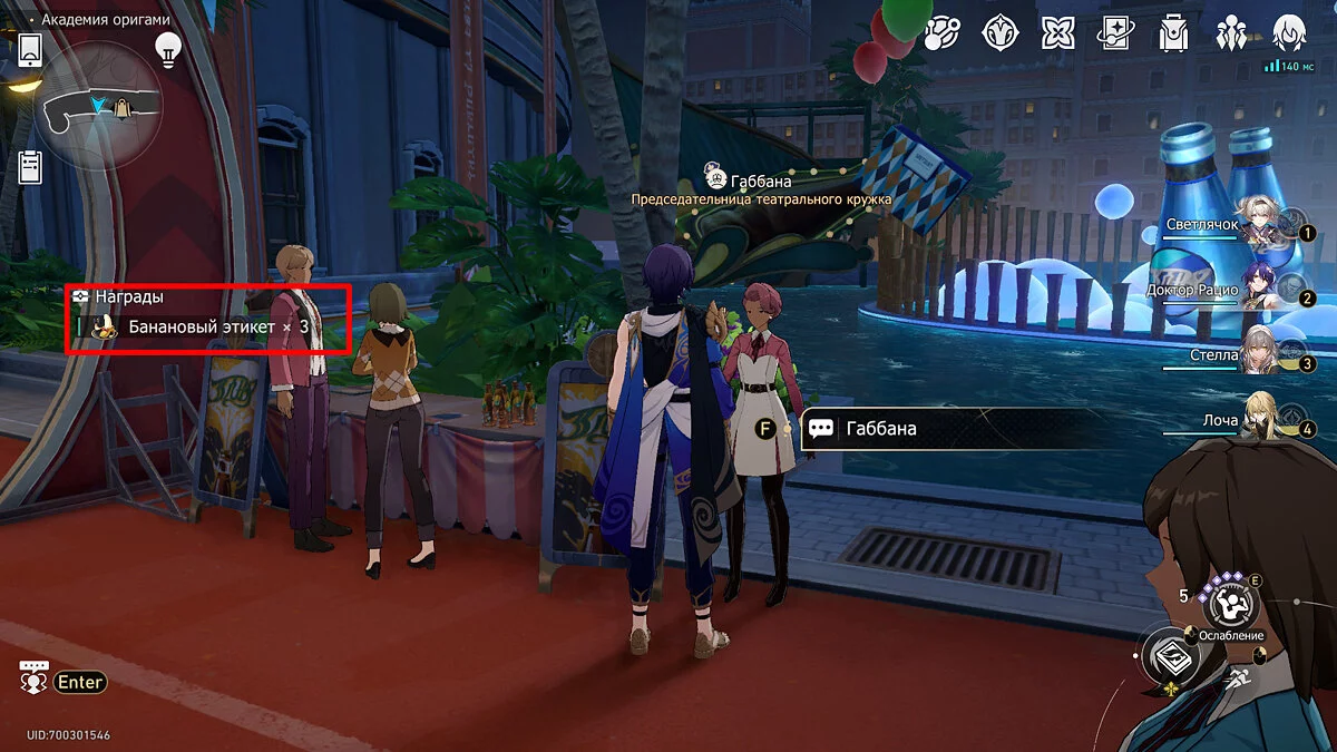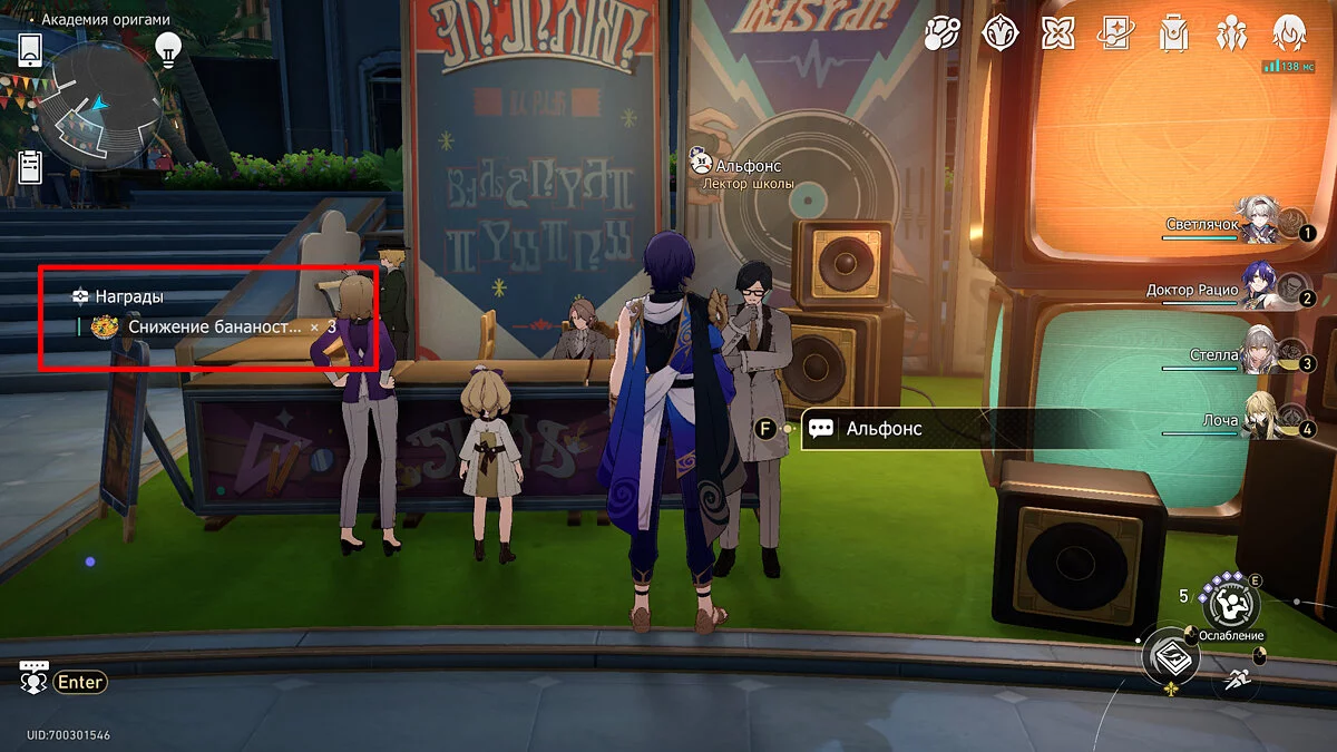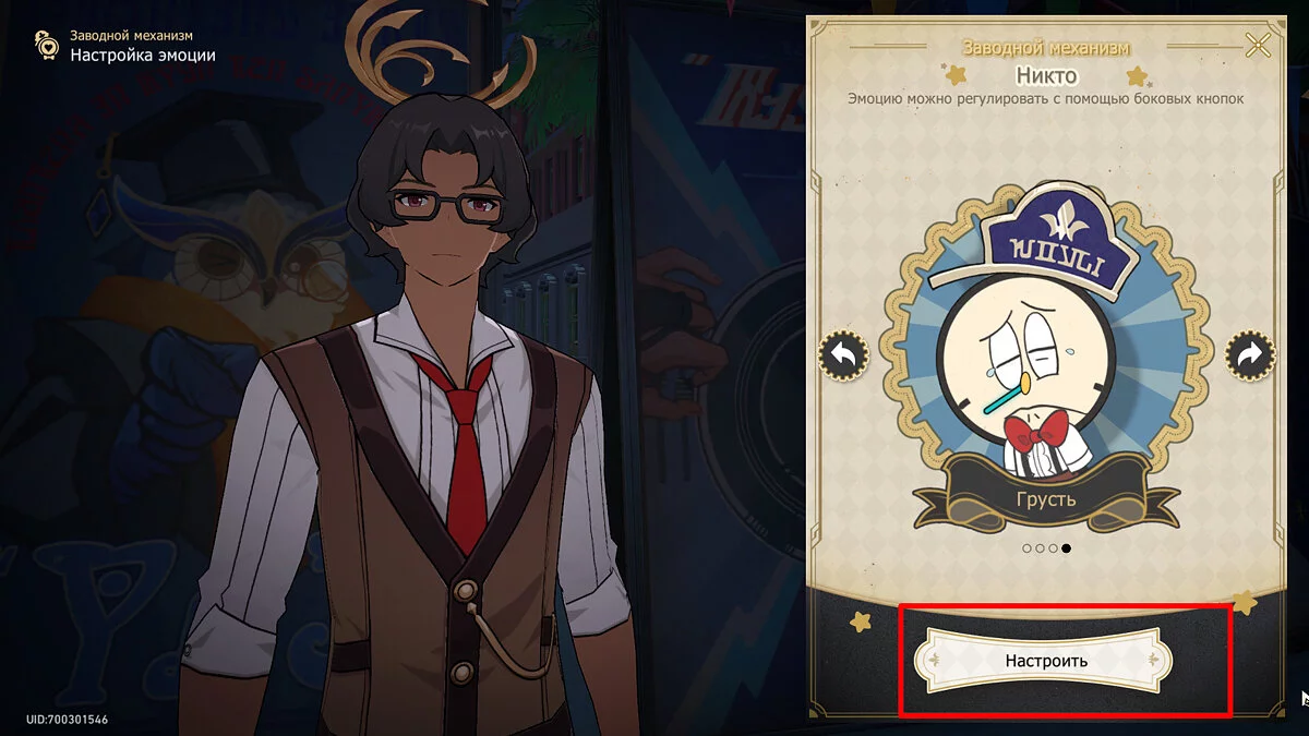 Поговорите с юношей и воспользуйтесь заводным механизмом. Чтобы получить подарок в виде трёх блюд «Снижение бананостресса» на восстановление энергии, включите у персонажа эмоцию гнева.