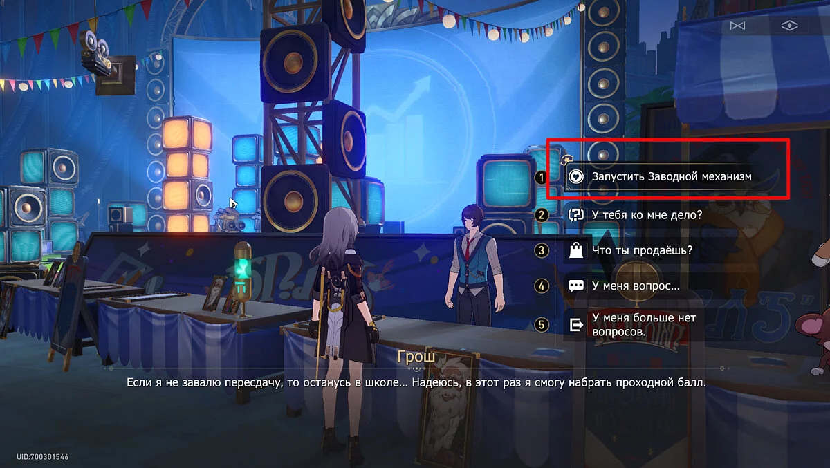 Заговорите со знакомым и запустите заводной механизм, который позволит сменить эмоцию у хитроумного продавца. Чтобы получить небольшую награду в виде двух блюд «Зажигательной атмосферы», заставьте Гроша чувствовать восторг и прослушайте его реплики.