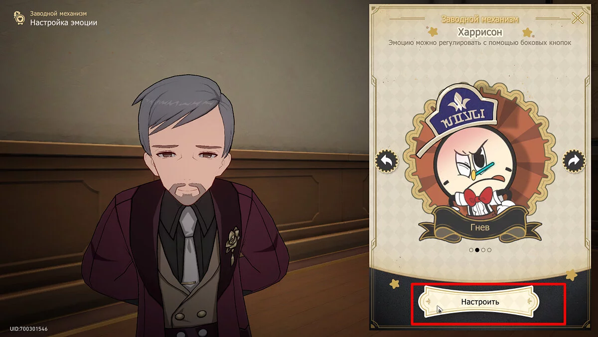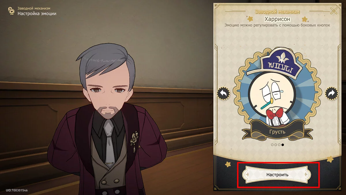 Поболтайте со стариком, хоть и не без проблем, а затем запустите заводной механизм. Как и в случае с Премой, для получения ачивки «'39» на пять единиц звёздного нефрита нужно переключиться на каждую доступную эмоцию Харрисона: грусть, покой, гнев и, в том числе, на самую первую — восторг.