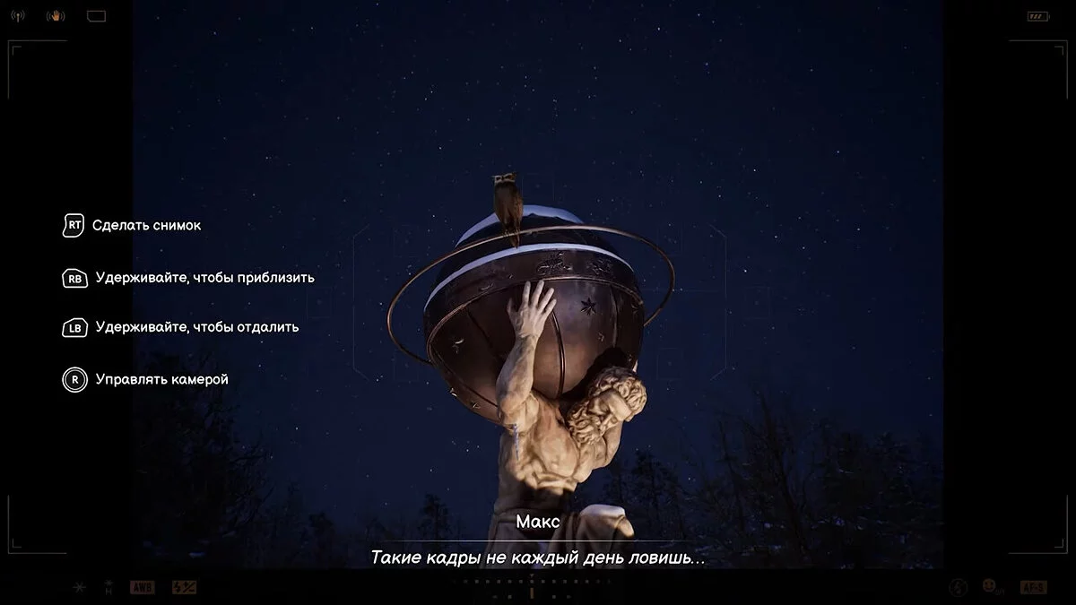 Сфотографируйте луну во время диалога с друзьями, затем смотрите катсцену. После этого отправляйтесь к фонтану, чтобы сфотографировать сову.