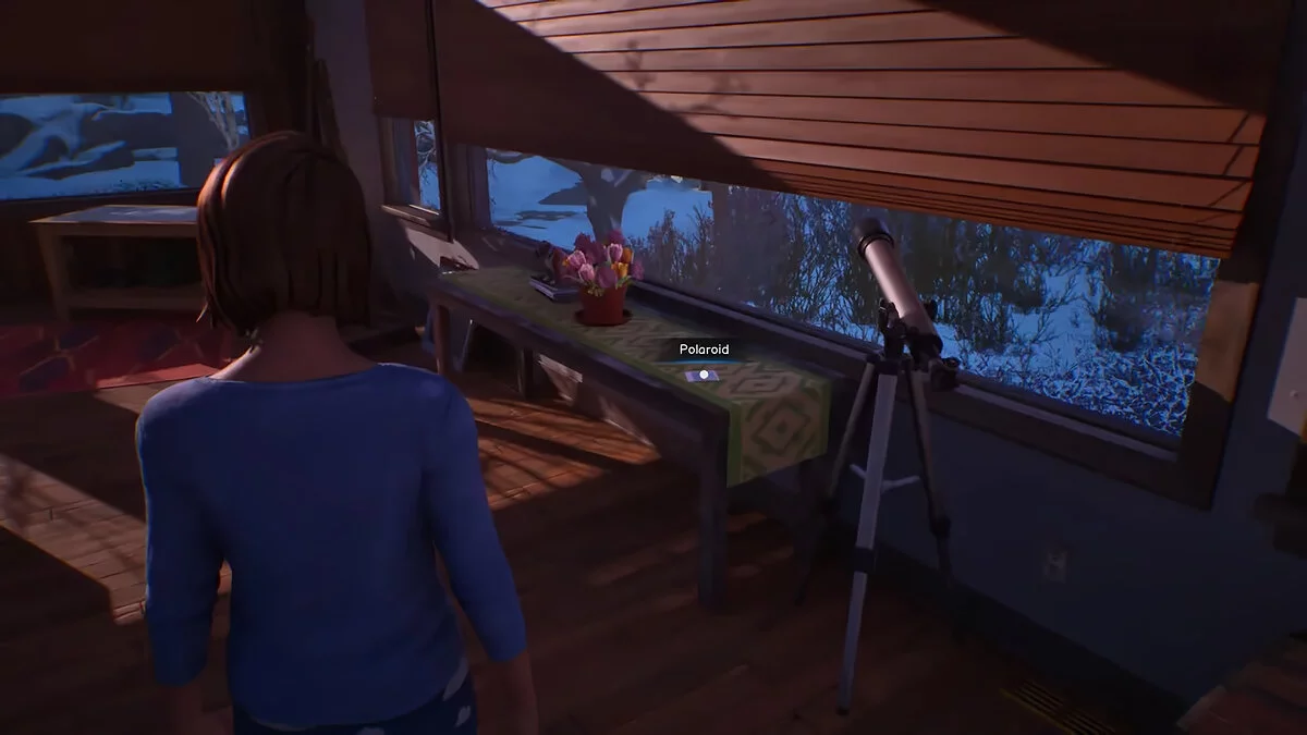 Оказавшись в квартире главной героини, вам предстоит задать вопросы неожиданному гостю. Прежде чем переодеться в более тёплую одежду, переключитесь на линию жизни. В углу комнаты, рядом с пустым мольбертом вы найдёте полароидный снимок, лежащий на столе.