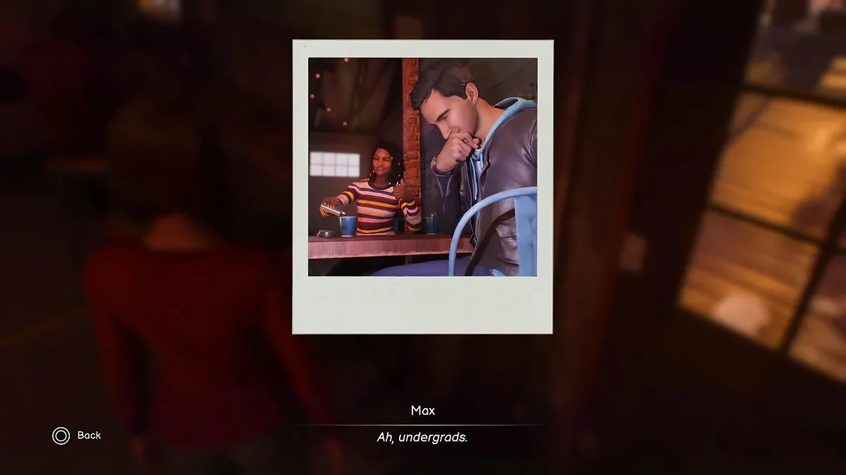 Попав в бар, сначала поговорите с Сафи, а затем пройдите мимо двух студентов, сидящих за столом — Реджи и Даймондом. Обернитесь направо, где вы заметите полароид, лежащий у задней двери.