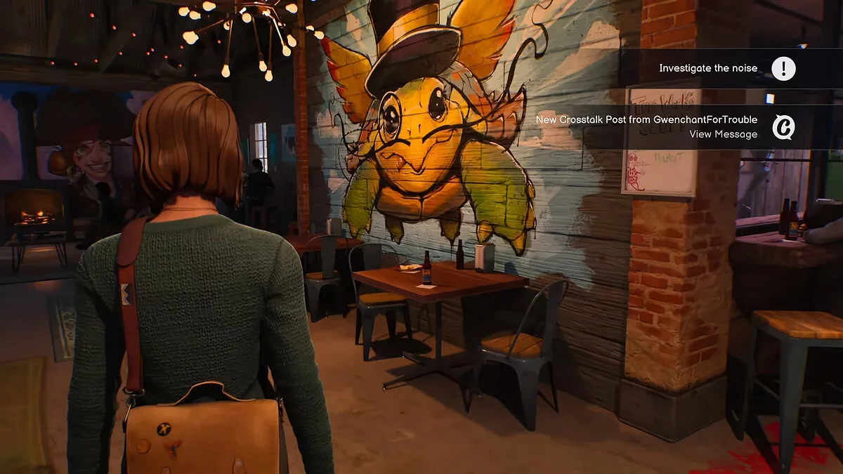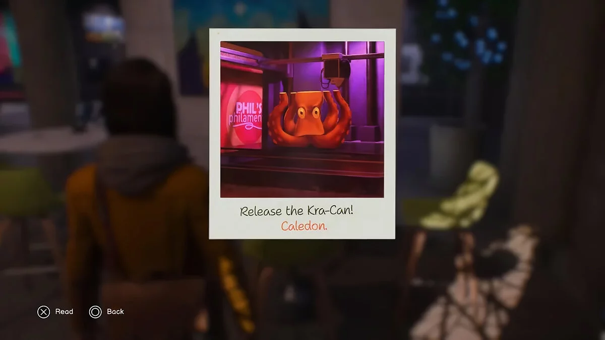 Побывав в офисе Гвен, обойдите здание факультета искусств и направляйтесь в кофейню на углу. Переключитесь в мир живых и заберите полароид, который лежит на дальнем столике в кофейне.