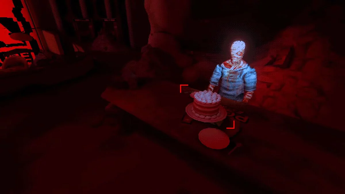 Вы окажетесь в кошмарной обстановке, где Кёрли сидит за столом в гостиной, а перед ним стоит праздничный торт. Подойдите к столу и сядьте напротив мужчины. Он предложит вам съесть с ним торт. Однако перед тем как приступить, вам нужно будет найти нож.