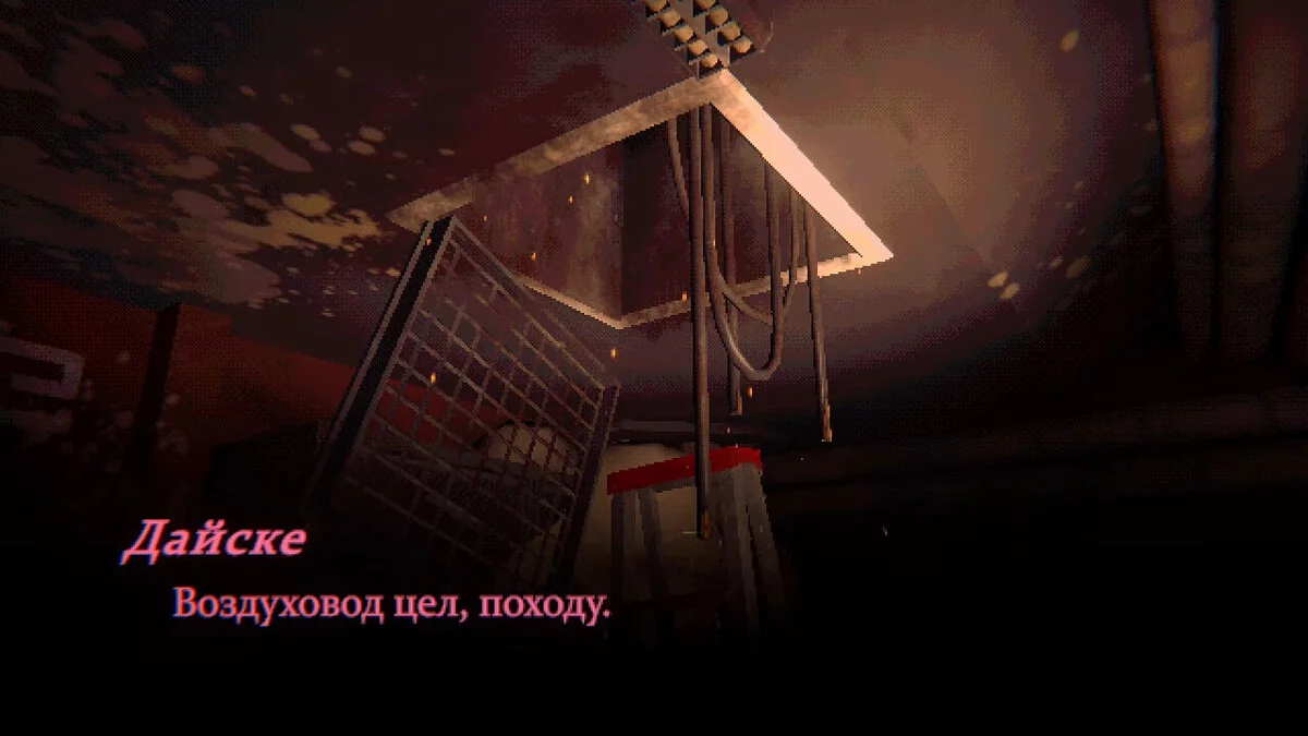Приземлившись, вы окажетесь в вентиляционных проходах. Двигайтесь вперед, стараясь не издавать лишнего шума, когда вдруг заметите, как фигура Дайске исчезает в темноте.