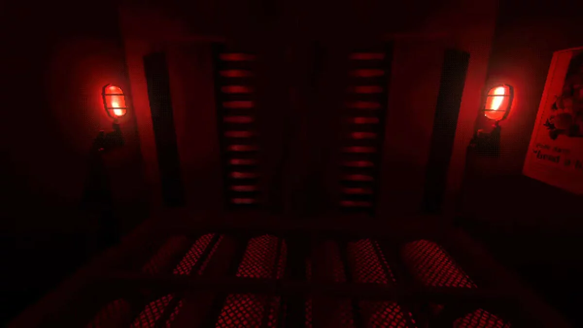 Когда вы выйдете из подсобного помещения, коридор будет выглядеть иначе. Вокруг не будет дверей, а путь начнёт ощущаться как бесконечная петля. Коридор будет сужаться и искажаться, стены расплываться, а глаза начнут появляться на разных поверхностях, следя за вами. Чем дальше вы идете, тем более странным и размытым становится пространство. Это продолжится до тех пор, пока коридор не перейдёт в другой тоннель.