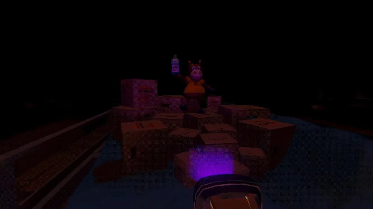 Идите прямо, пока не выйдете на склад. Вы увидите несколько огней вдалеке. Пройдите по дорожке над ними и увидите Керли, сидящего со множеством мониторов вокруг. Смотрите мультфильм по телевизору, пока торт не будет поставлен на стол, и вы можете нажать на него, чтобы взять «еду».