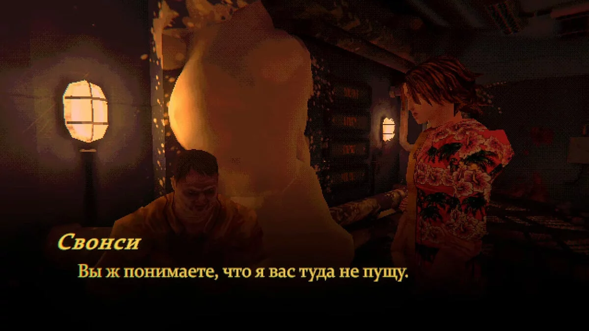 Спуститесь в подсобное помещение в большом коридоре. Свонси будет сидеть прямо за дверью. Поговорив с ним, он даст понять, что не хочет, чтобы вы заходили внутрь, и сцена сменится.