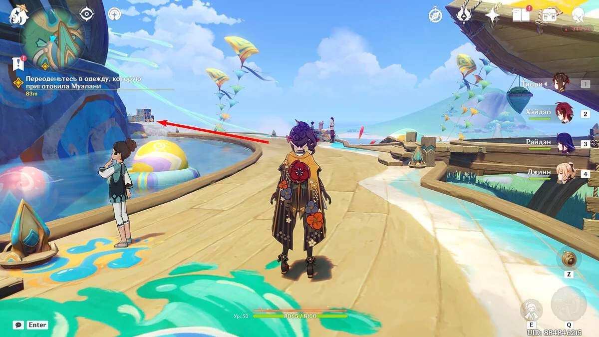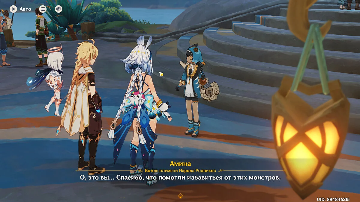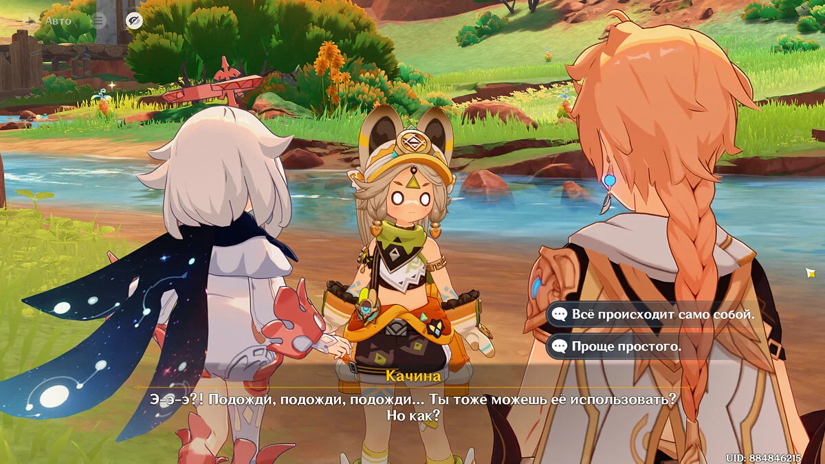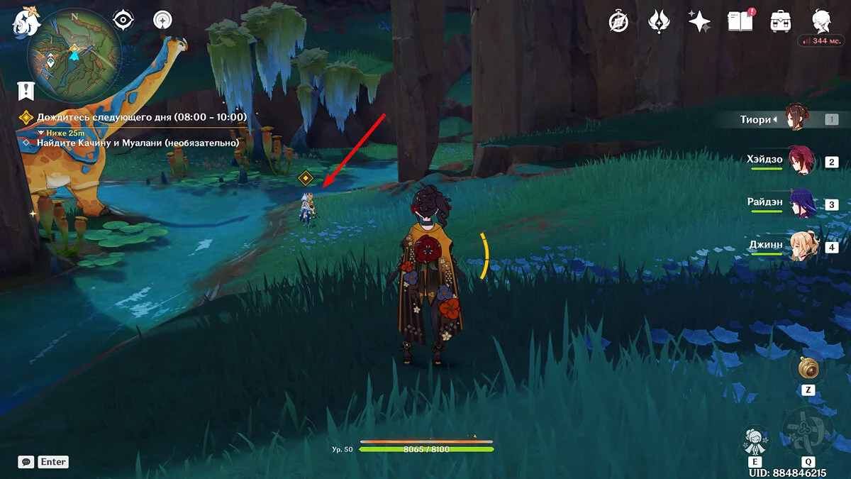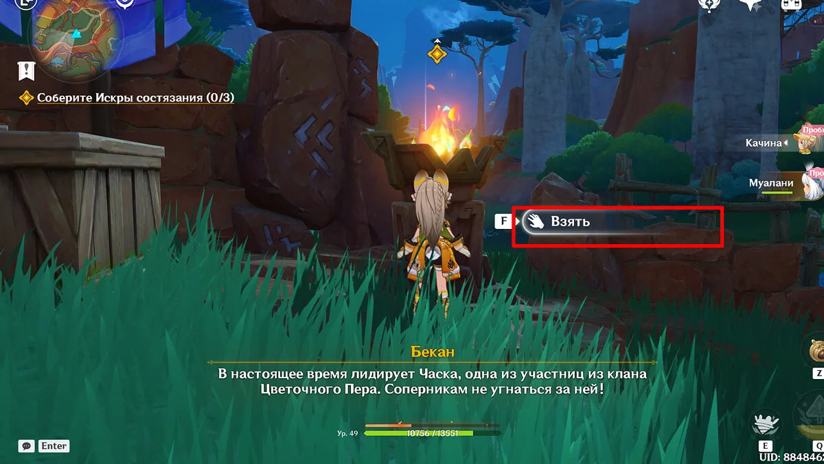Поговорите с Муалани и Киничем. Пока Качина вместе с победителями отправляется на битву с Бездной, новые друзья предлагают Путешественнику посетить свои племена. Несмотря на интересные предложения, в итоге вам предстоит отправиться в племя «Народ Родников».