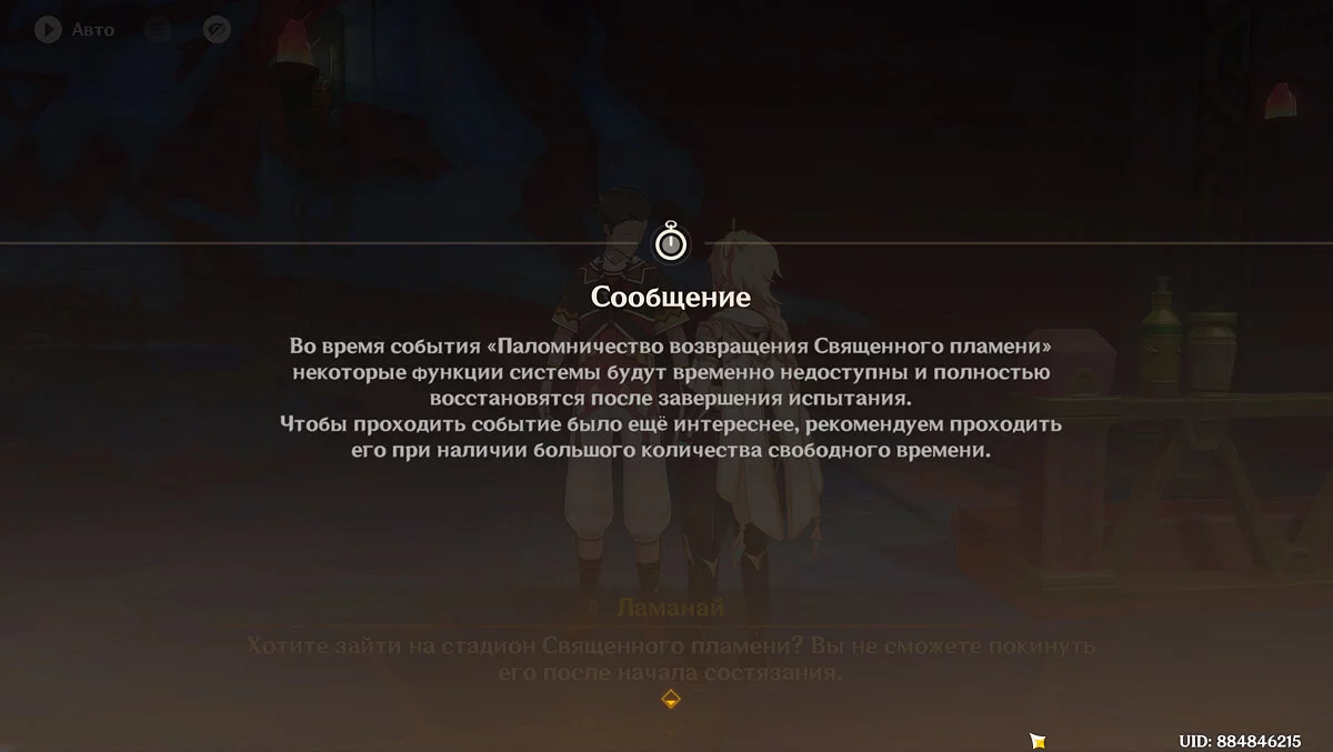 Вернитесь в «Обитель усталости», чтобы встретиться там с новыми друзьями и проводить их на турнир. После чего поговорите с NPC по имени Ламанай. Игра даст оповещение, в котором предостережёт, что проходить квест нужно если есть достаточно много свободного времени. Если готовы продолжить, выберите ответ «войти на трибуну» и турнир начнётся.